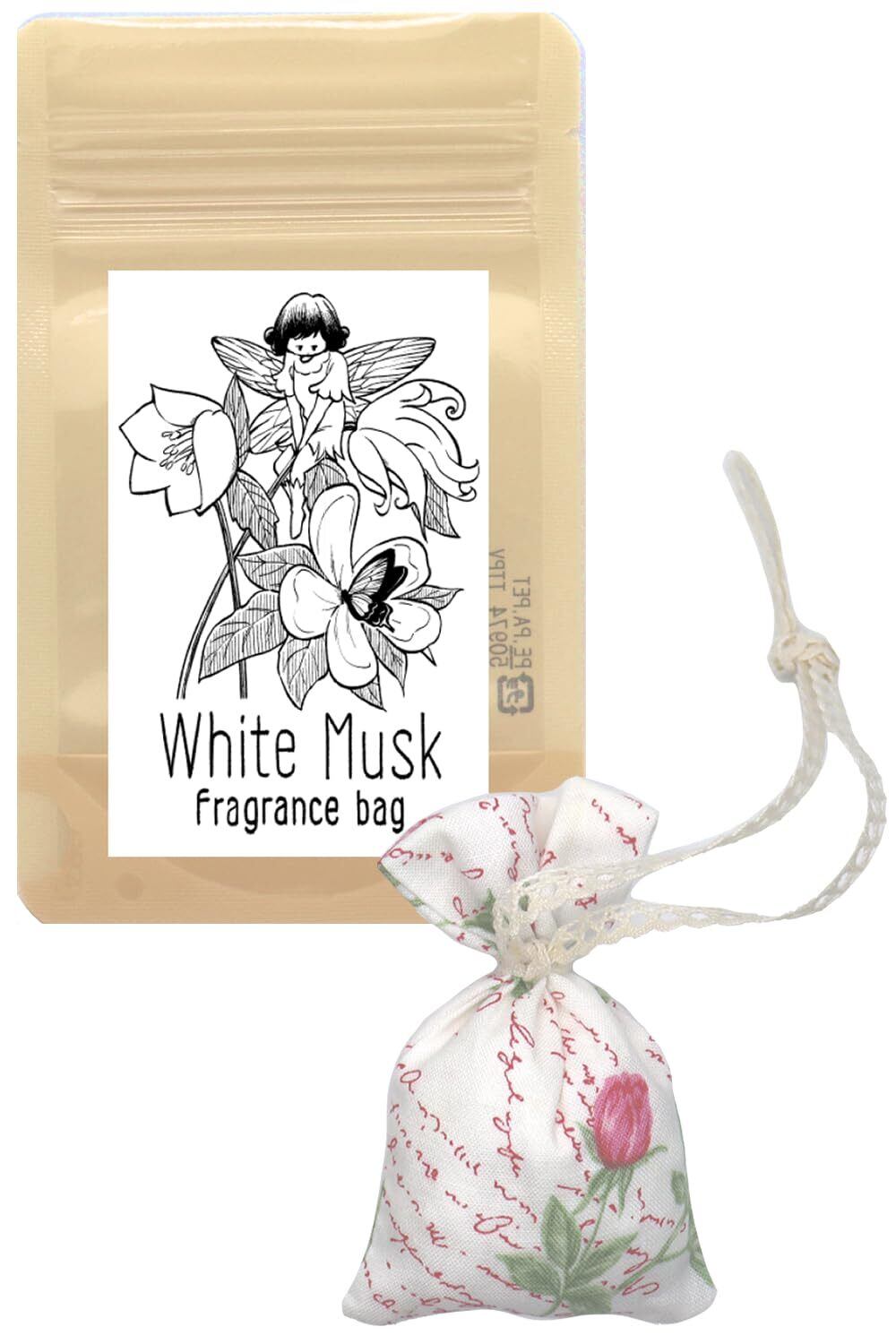 ホワイトムスク 香り袋 重厚なムスクをベースに爽やかで涼しげなホワイトブーケをイメージした香り フレッシュ ホワイティーブーケ ムスク ノート (ジャスミン ローズ イランイラン シダーウッド サンダルウッド ムスク) クローゼットにお洋服と一緒にしまったり 引き出しやバッグの中に入れたりするだけで上品な香りを放ってくれます。 ほのかな香りが優しく広がるので、強い香りが苦手な方にもおすすめです。