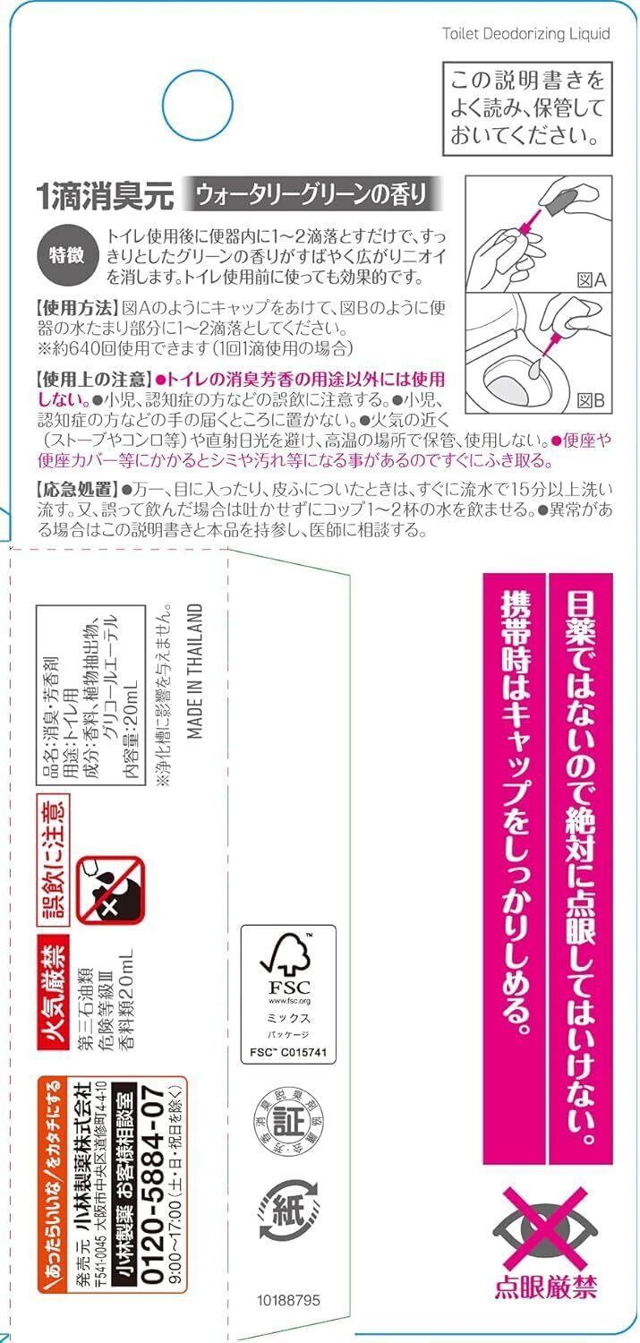 1滴消臭元 ウォータリーグリーンの香り 20ml (約640滴分) ×4個 (おまけ付) 消臭芳香剤 トイレ用 小林製薬 たった一滴でしっかり消臭