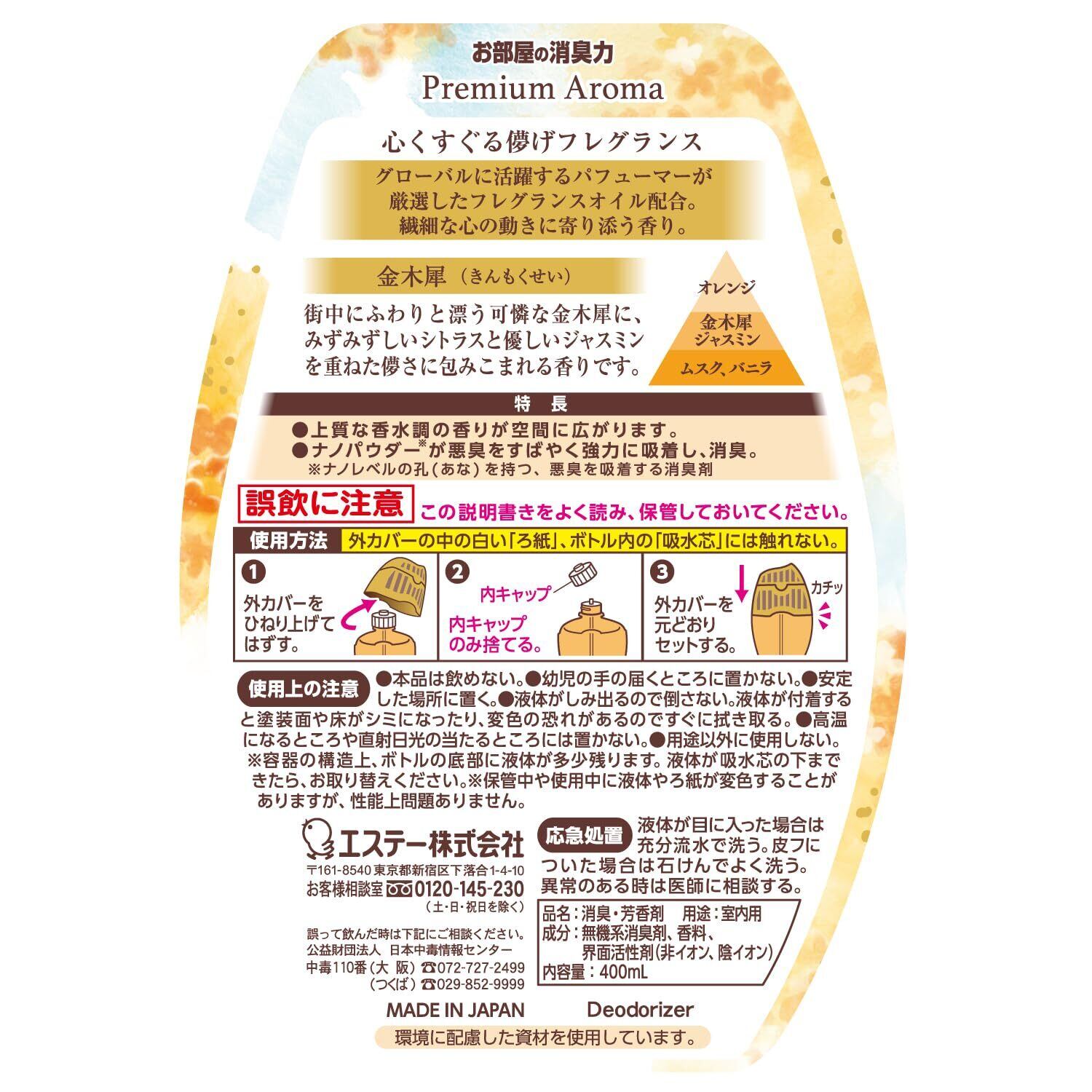 消臭力 プレミアムアロマ 部屋用 置き型 金木犀 (きんもくせい) 400mL×3個 お部屋の消臭力 玄関 リビング 寝室 ルームフレグランス 消臭剤 消臭 芳香剤