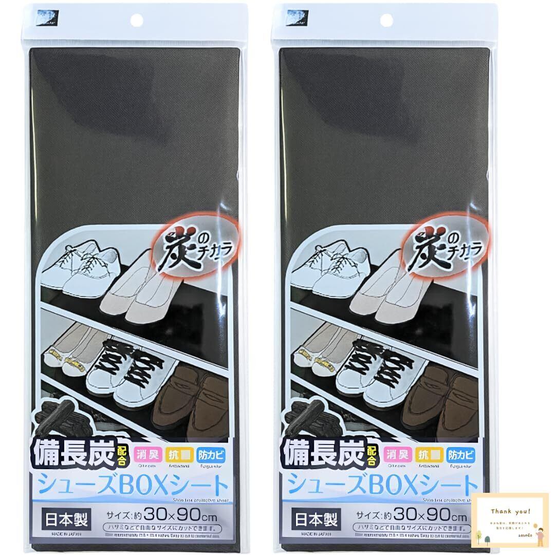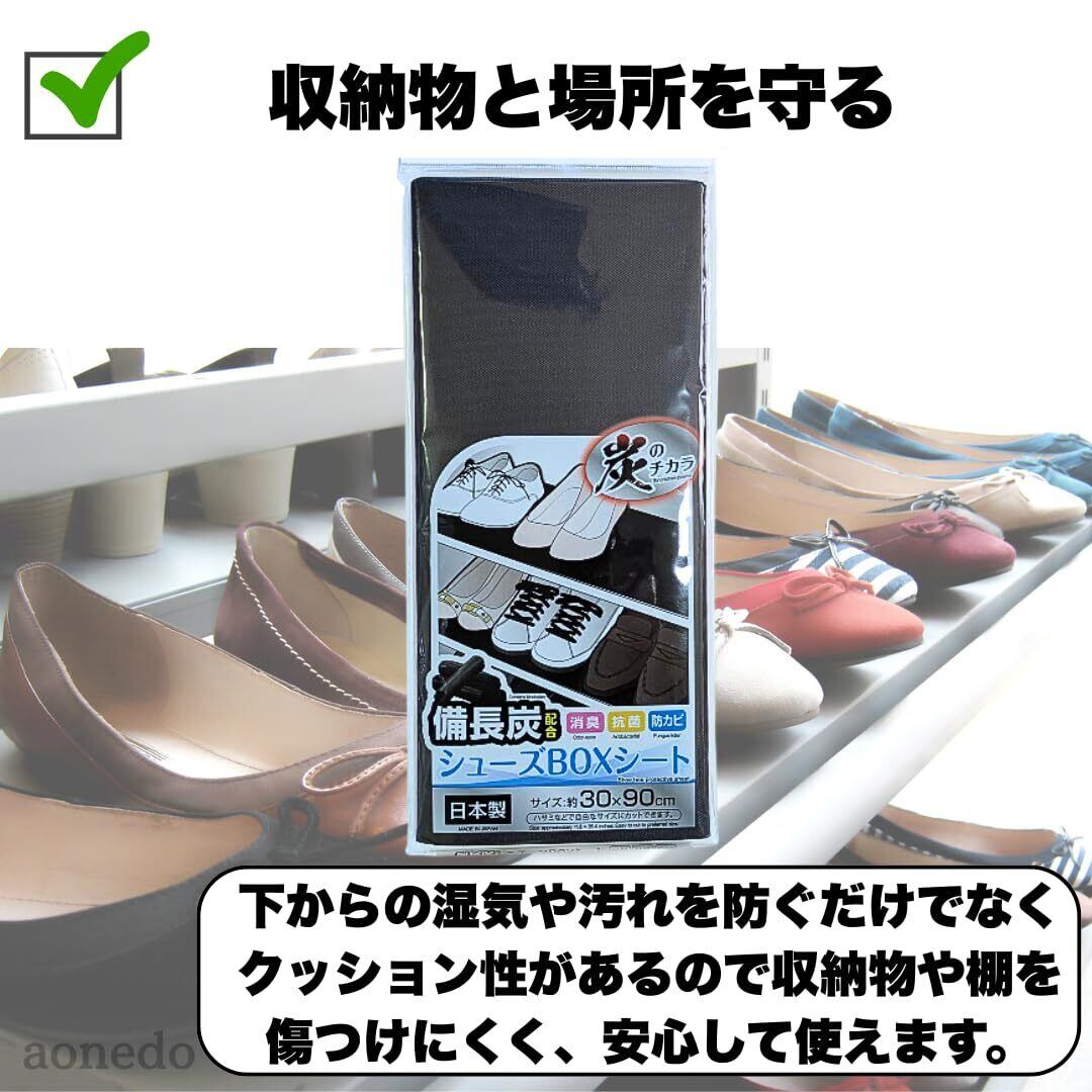 日本製 備長炭配合 下駄箱 シート シューズボックスシート 消臭 抗菌 防カビ 靴箱 ハサミで自由にカット (2個)