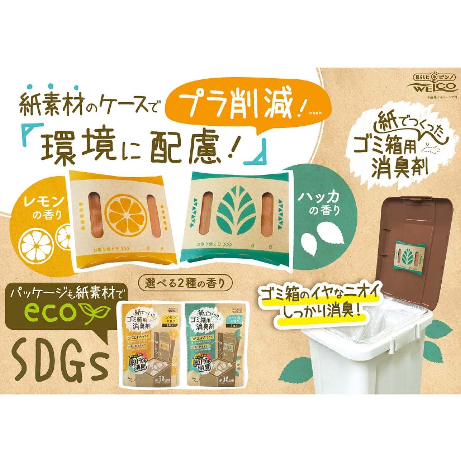 ウエ・ルコ 紙でつくったゴミ箱消臭剤 レモンの香り 1個 日本製