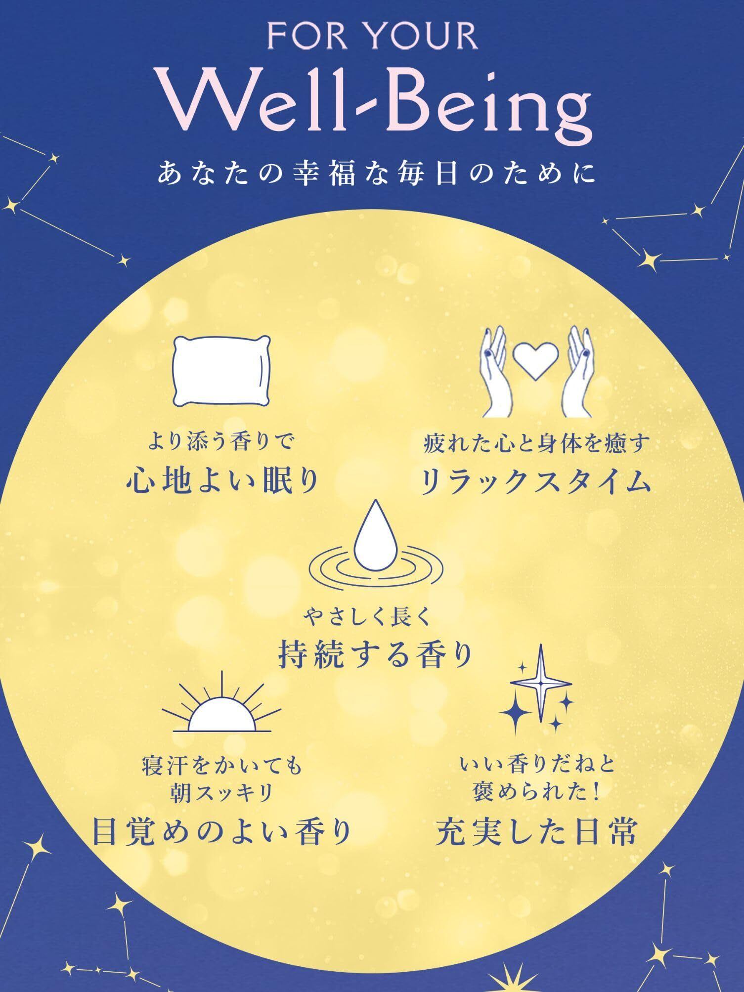 深呼吸フレグランスでベッドルームもお洋服も心地よく。 空間の香りを楽しみたい時や、布製品のニオイが気になる時にお使いください。