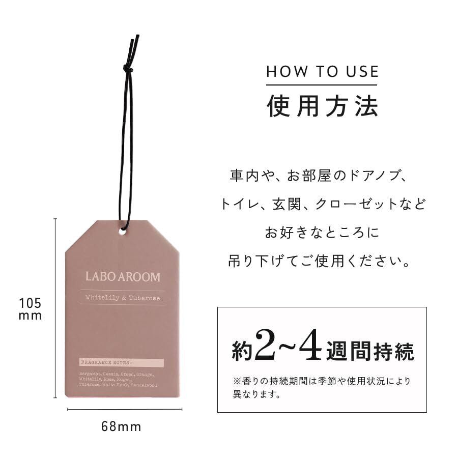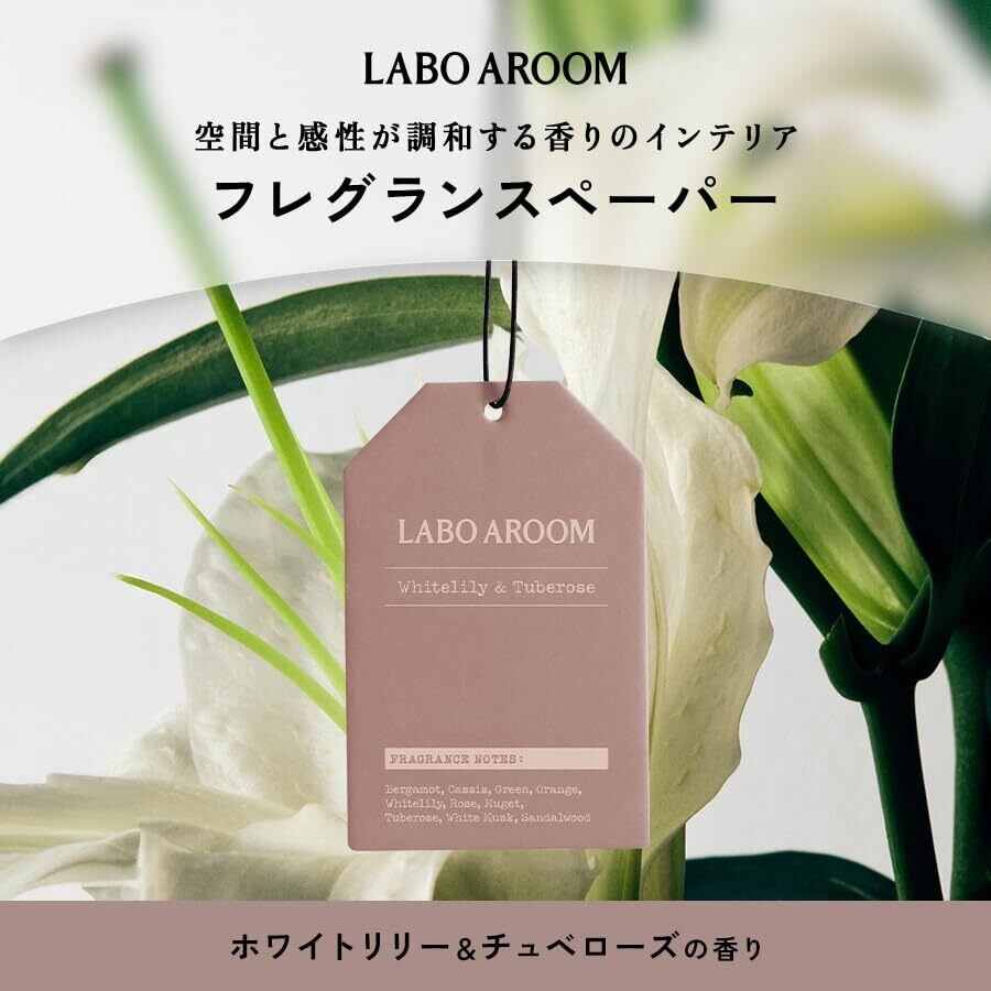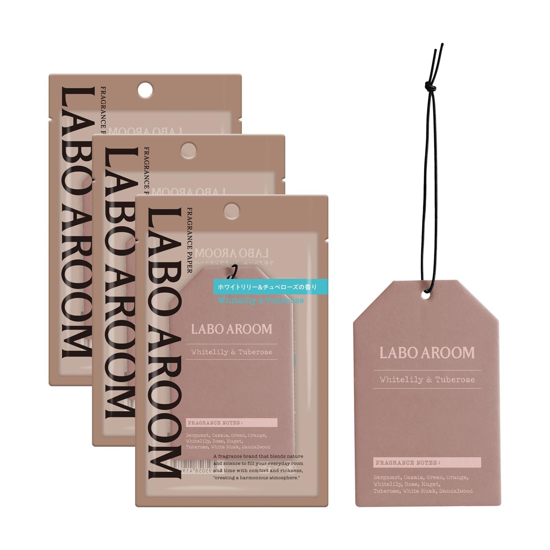 LABO AROOM ラボアルーム フレグランスペーパー WHITE LILY & TUBEROSE ホワイトリリー&チュベローズ 吊り下げ型 芳香シート ペーパー 吊り下げ クローゼット 車内 3枚