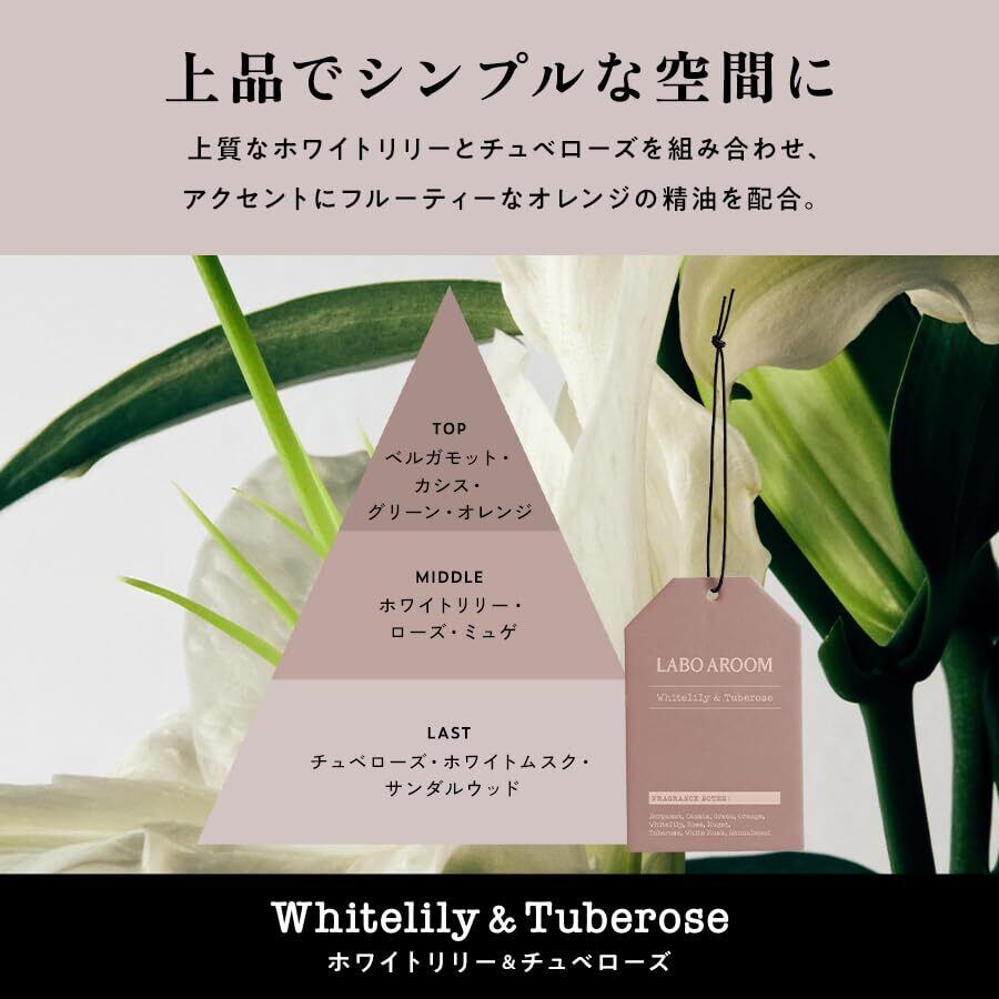 上質なホワイトリリーとチュベローズを組み合わせ、アクセントにフルーティーなオレンジの精油を配合