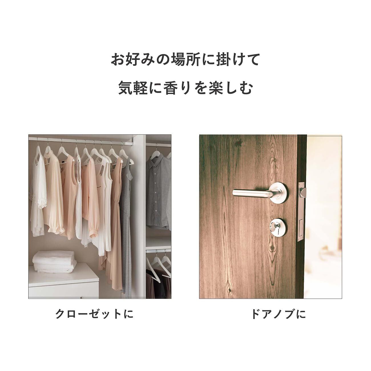 ●クローゼットのバーやドアノブなど、お好みの場所に掛けて香りをお楽しみください。