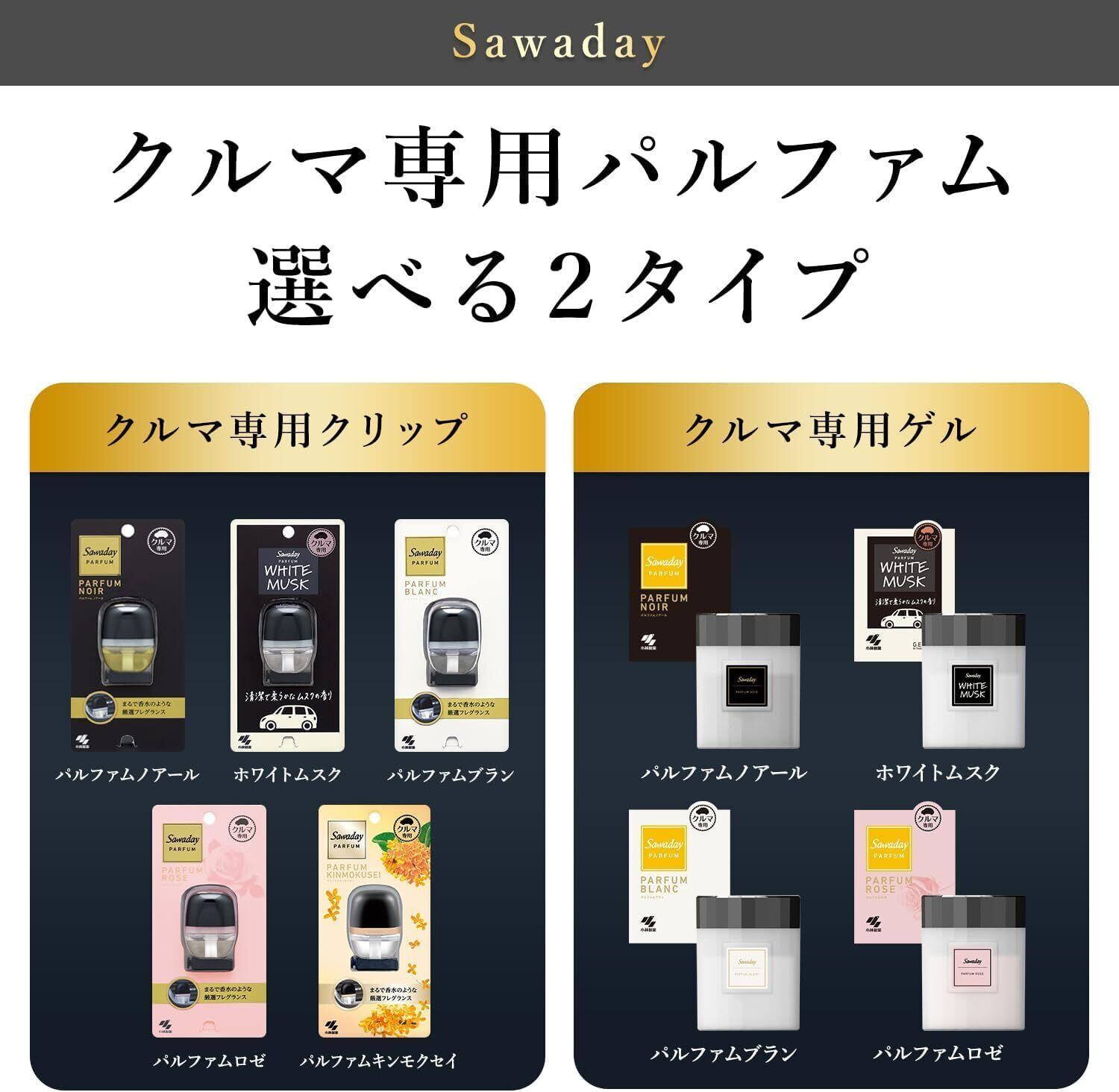 サワデー Sawaday カー 車用 パルファム ホワイトムスク 消臭芳香剤 クリップタイプ 6ml×2個パック