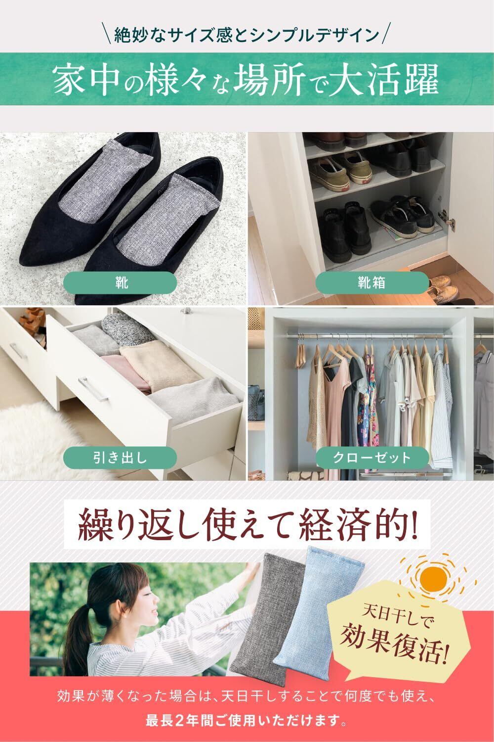 【 繰り返し使える 】天日干しをする事で最大2年間繰り返しご使用いただけます。