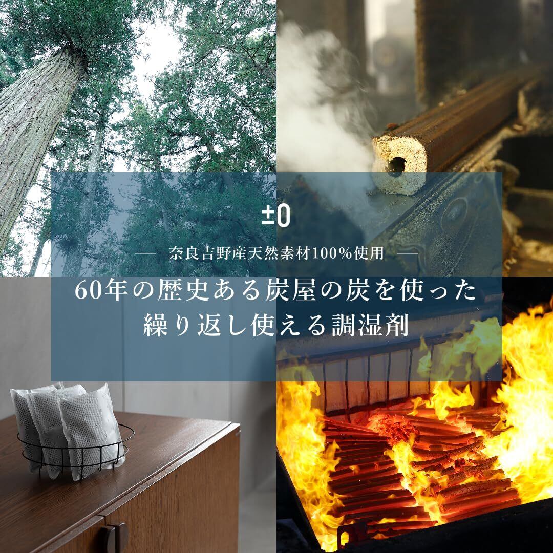 ±0 木炭スクエアL 調湿×消臭 大容量 国産100% 奈良吉野産 除湿 梅雨対策