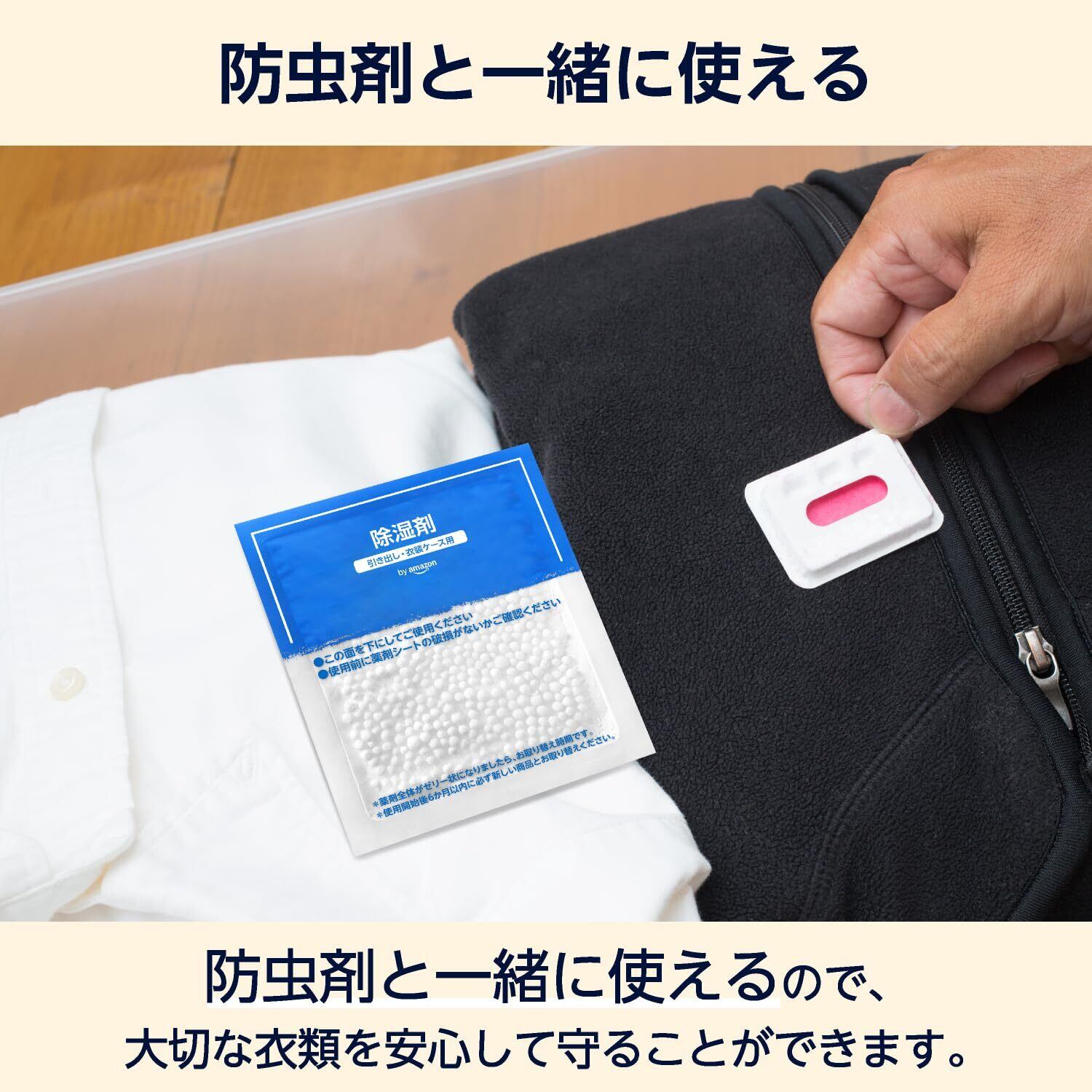 by 除湿剤引き出し衣装ケース用はブランドの家庭用除湿剤です。 お客様が求める商品を企画し、製造まで、品質確認を徹底しています。 ●引き出しや衣装ケース内の湿気を取り、ゼリー状に固めるので液もれの心配をせず、除湿効果を確認できます。 ●外袋は保存に便利なファスナー付きです。 ●防虫剤と一緒に使えます。