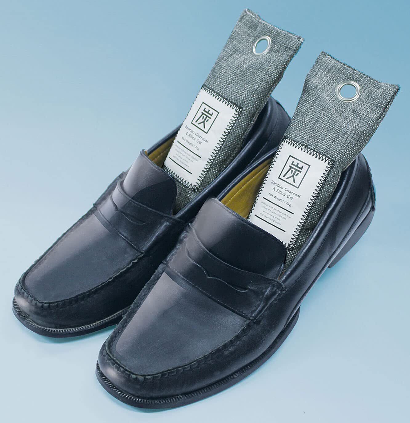 KOKUBO(コクボ) 竹炭 除湿消臭バッグ (約75g×2個) 繰り返し使える除湿剤 消臭 脱臭 靴 下駄箱 ブラック 幅7.2×奥行3.2×高さ17cm