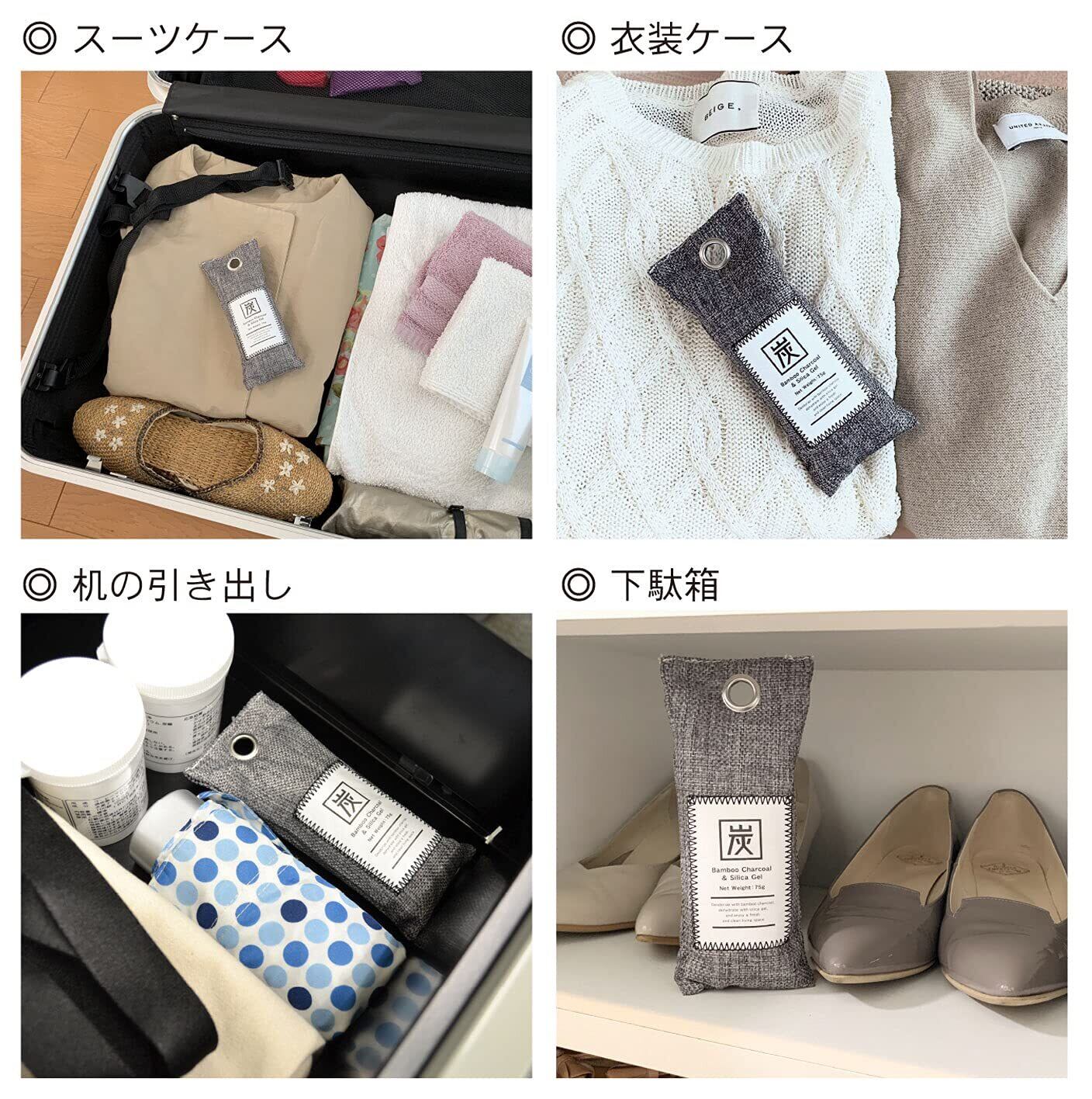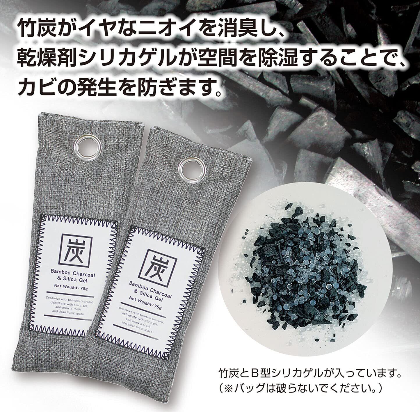 [内容物成分]竹炭、B型シリカゲル
