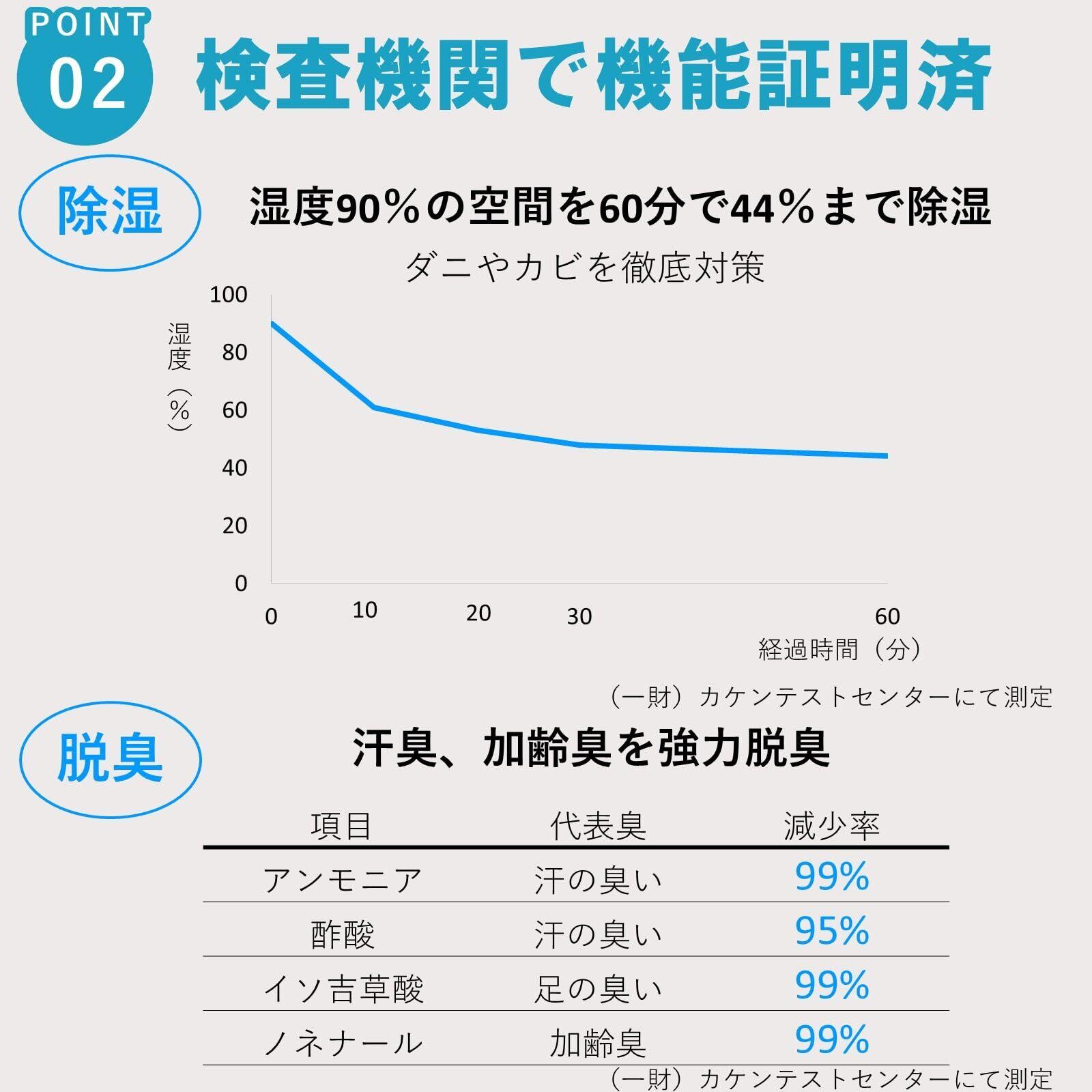 強力消臭効果:加齢臭や汗臭を強力消臭し、お布団やお荷物、押し入れ内の気になる臭いを徹底対策します。