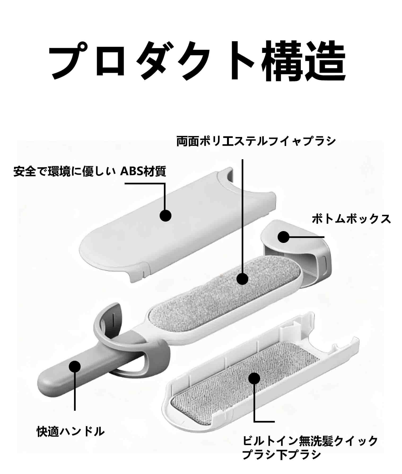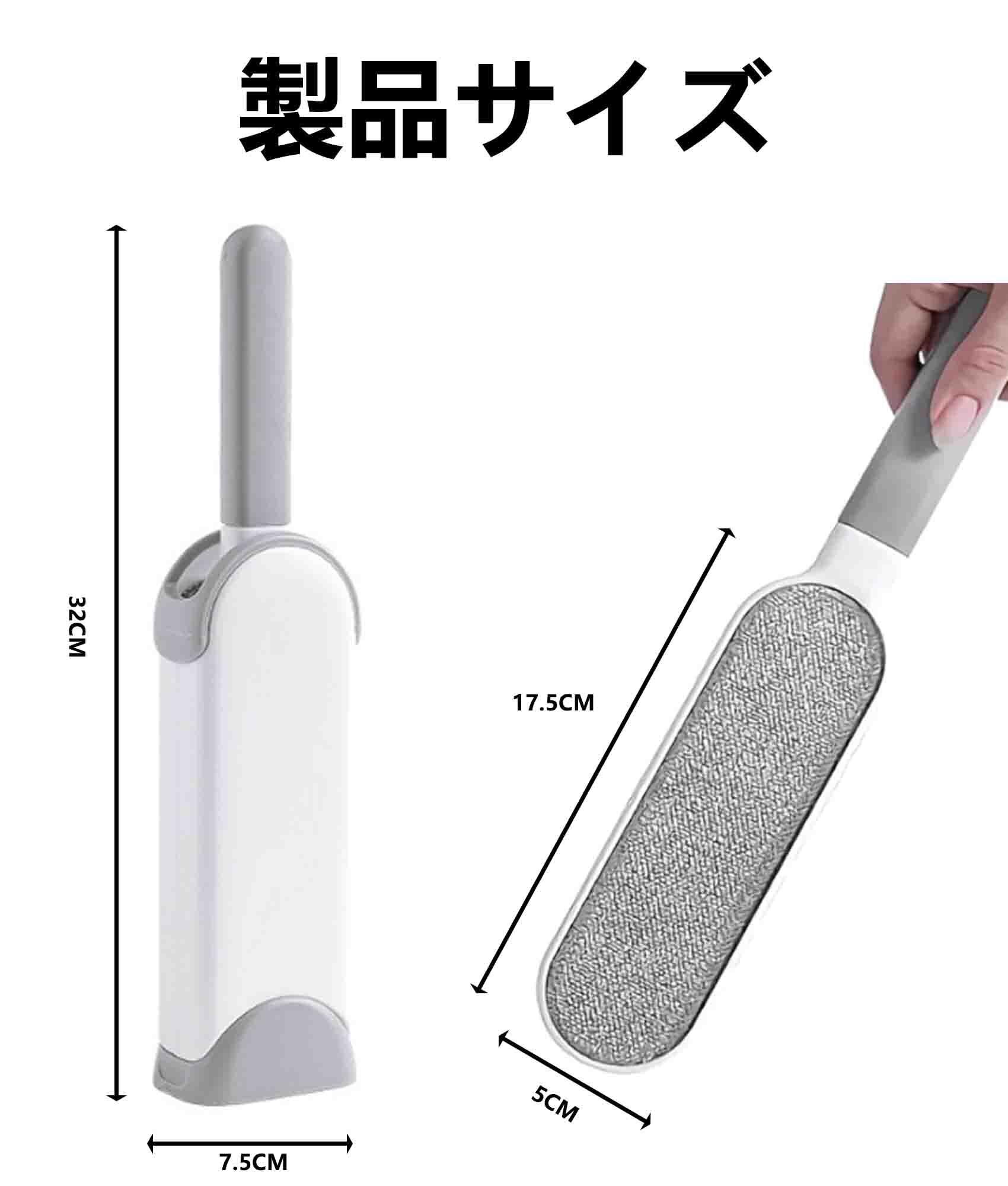 洋服ブラシホコリ取ブラシ 毛取りブラシ 両面使え ケース付き 繰り返し使える ペットの毛 寝具 衣類 カーペット グレー32cm×7.5cm