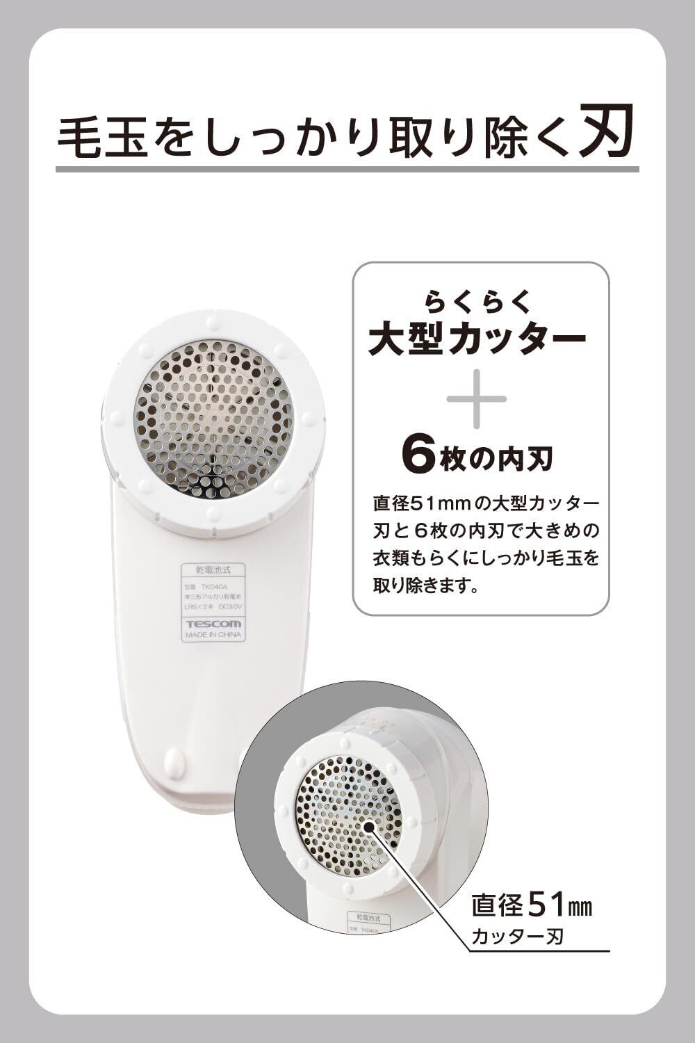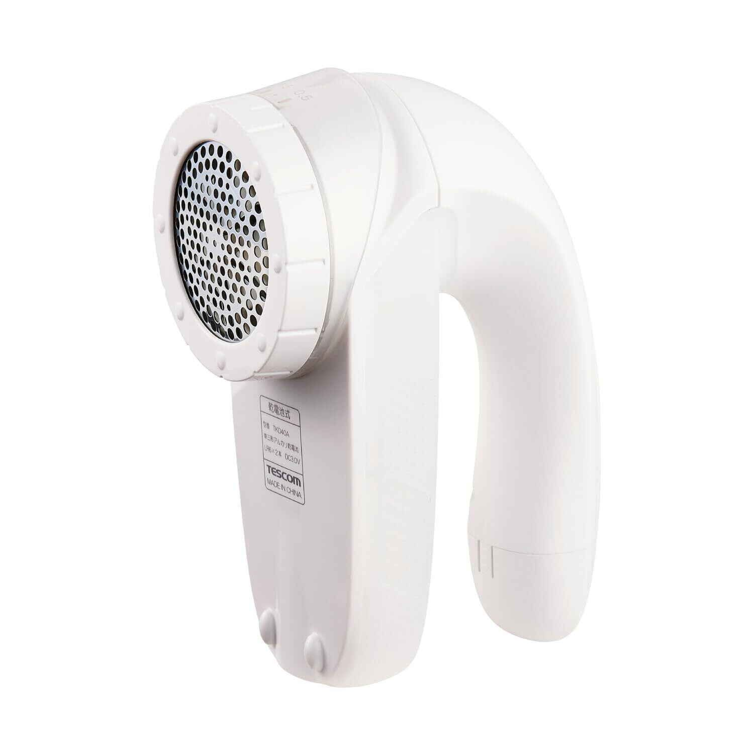 テスコム 毛玉クリーナー 乾電池式 6枚刃 風合いガード 5段階調整 海外OK 毛だまトレタ ホワイト TKD40A-W