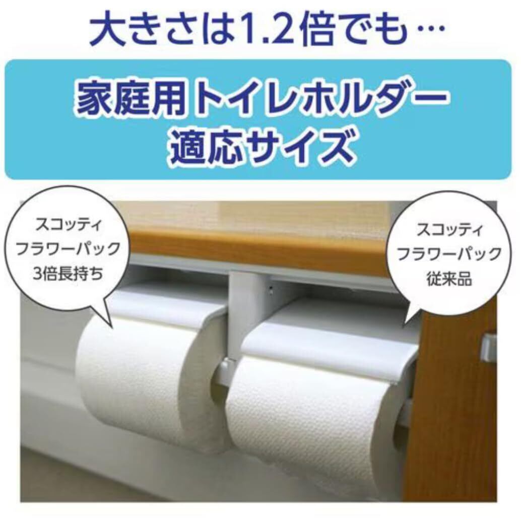 【フラワーパック 3倍長持ち トイレットペーパー 75mダブルの商品詳細】 ●4ロールで12ロール分の長さ!※フラワー12ロールダブルと比較して、1ロールの長さが3倍 ●たっぷり使えて取り替えの手間が減り、収納もコンパクト ●クレシア独自の凹凸加工でやわらかく、コンパクトな超長尺トイレットロール ●家庭用ホルダー適応サイズ ●温水洗浄器でも気持ちよく使っていただけます。 ●蛍光染料は不使用 ●ほのかな花の香りつき ●外側パッケージ上部の取っ手部分が、エリアによって写真と異なる場合もあります。スコッティ フラワーパック 3倍長持ち ダブル 75m×8ロール + オリジナルポケットティッシュ付 セット
