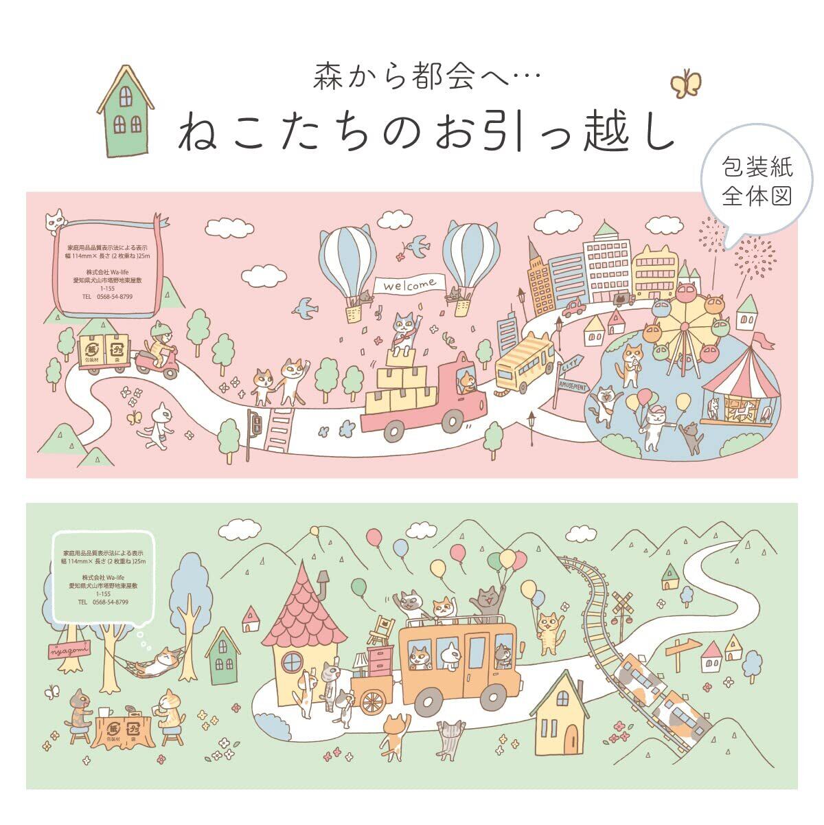 ねこのお引越し 引越し挨拶用ギフト マルチカラー (メッセージが書ける札付き フレッシュパルプ100%のトイレットペーパー使用)