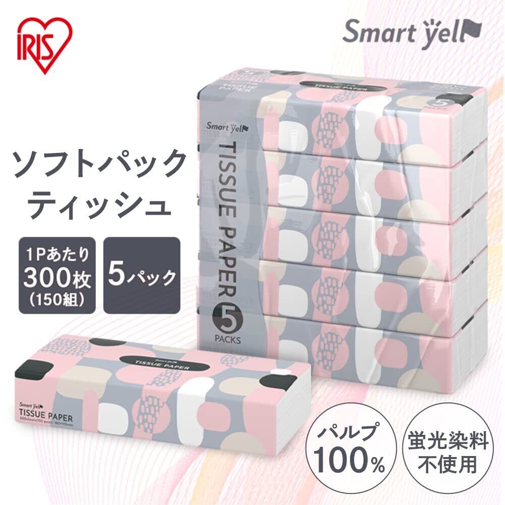 アイリスプラザ(IRIS PLAZA) ティッシュペーパー 300枚(150組)×5パック スマートエール