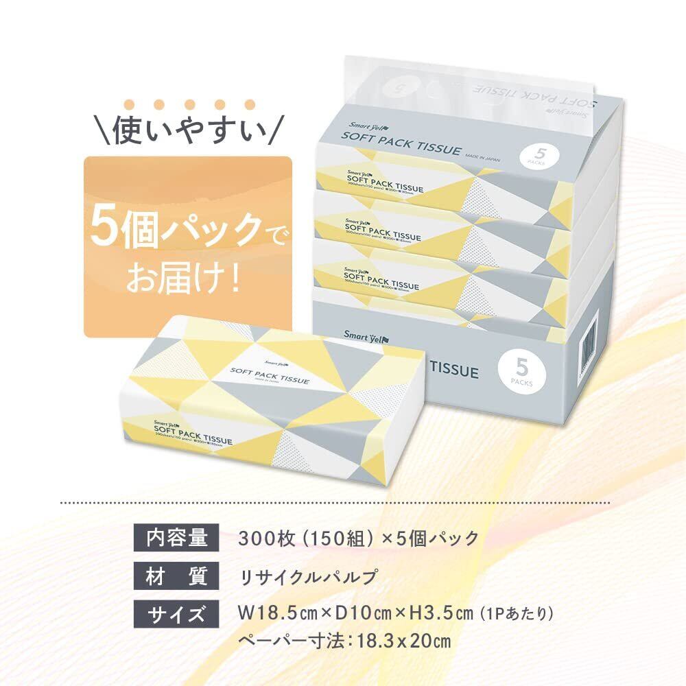 アイリスプラザ(IRIS PLAZA) ティッシュペーパー 300枚(150組)×5パック スマートエール 国産