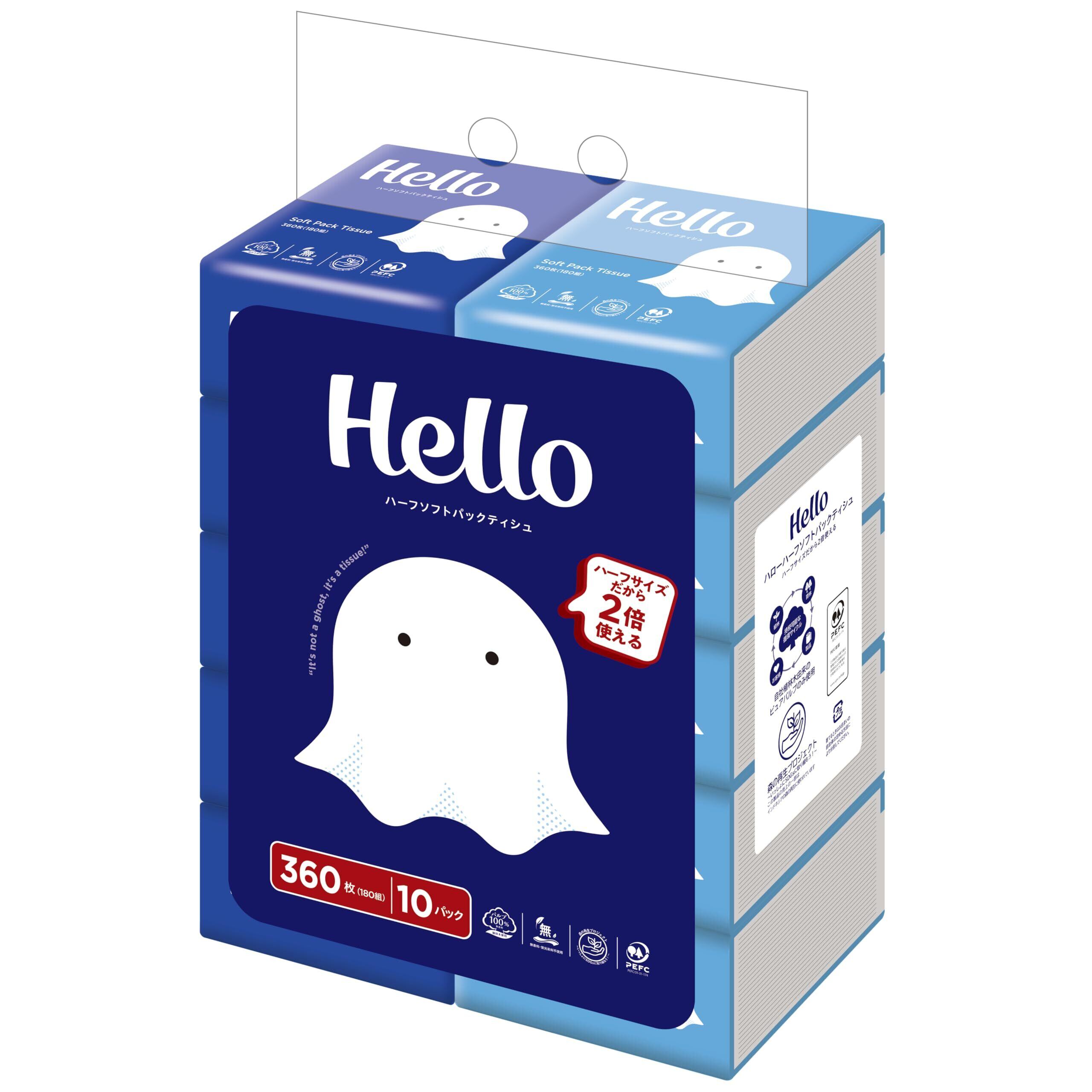 ハロー ハーフサイズ ティッシュ ソフトパック 360枚(180組) 10パック 得用 大容量 ユニバーサル・ペーパー