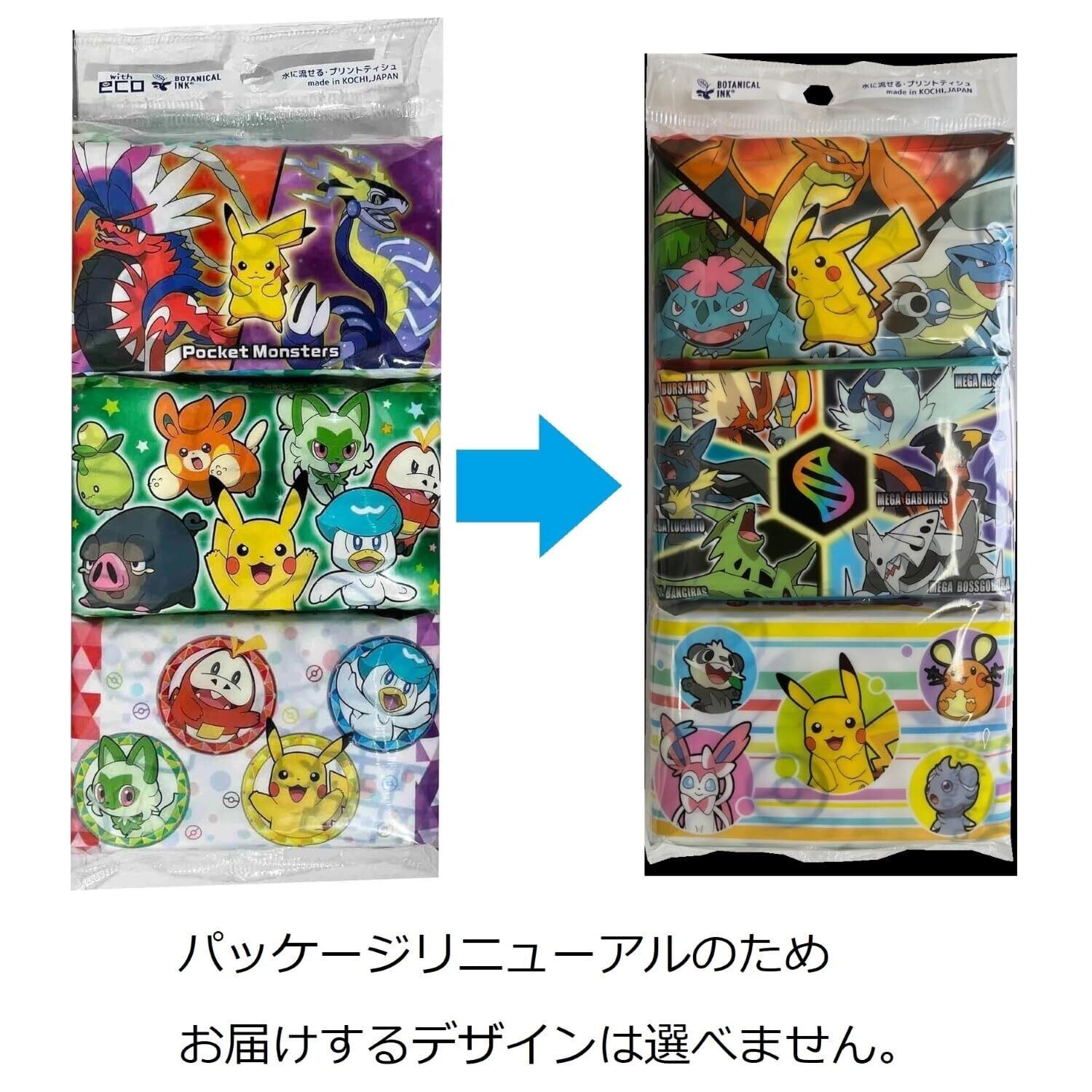 ポケモンのプリント入。水に流せるポケットティシュ。