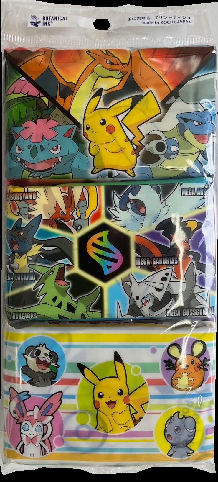 大人気のポケモンがティシュにプリントされた水に流せるポケットティシュです。パルプ100%。