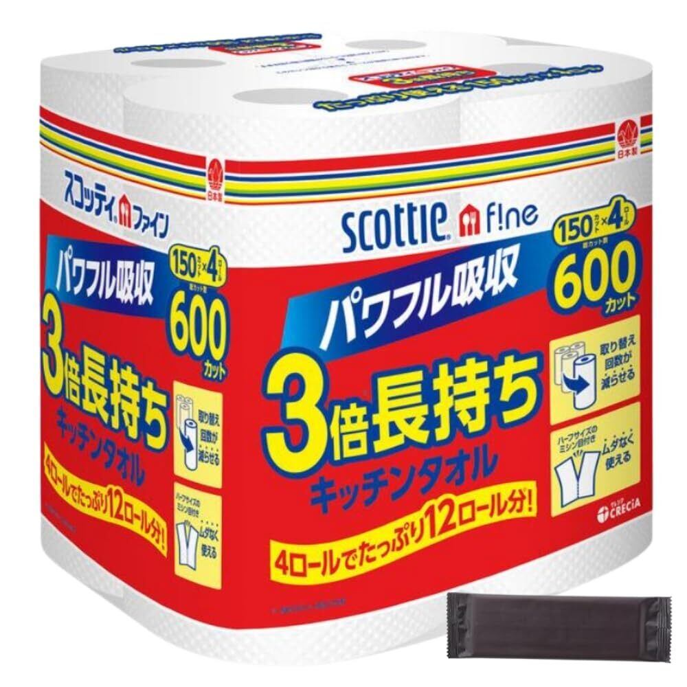 スコッティ ファイン 3倍巻き キッチンタオル 150カット 4ロール おしぼり付き