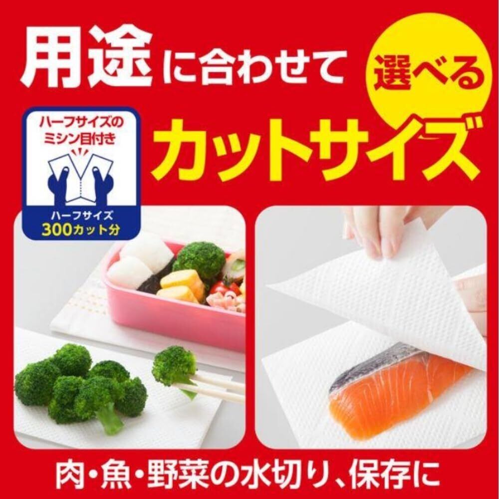 半分サイズにも切れるミシン目つきで、使用目的に合わせて長さが調節できます