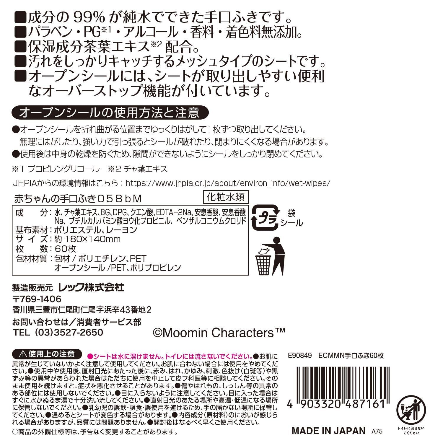 ムーミン 純水99% 手口ふき 60枚入×12個 (720枚) 日本製/保湿成分(茶葉エキス)配合/通販限定