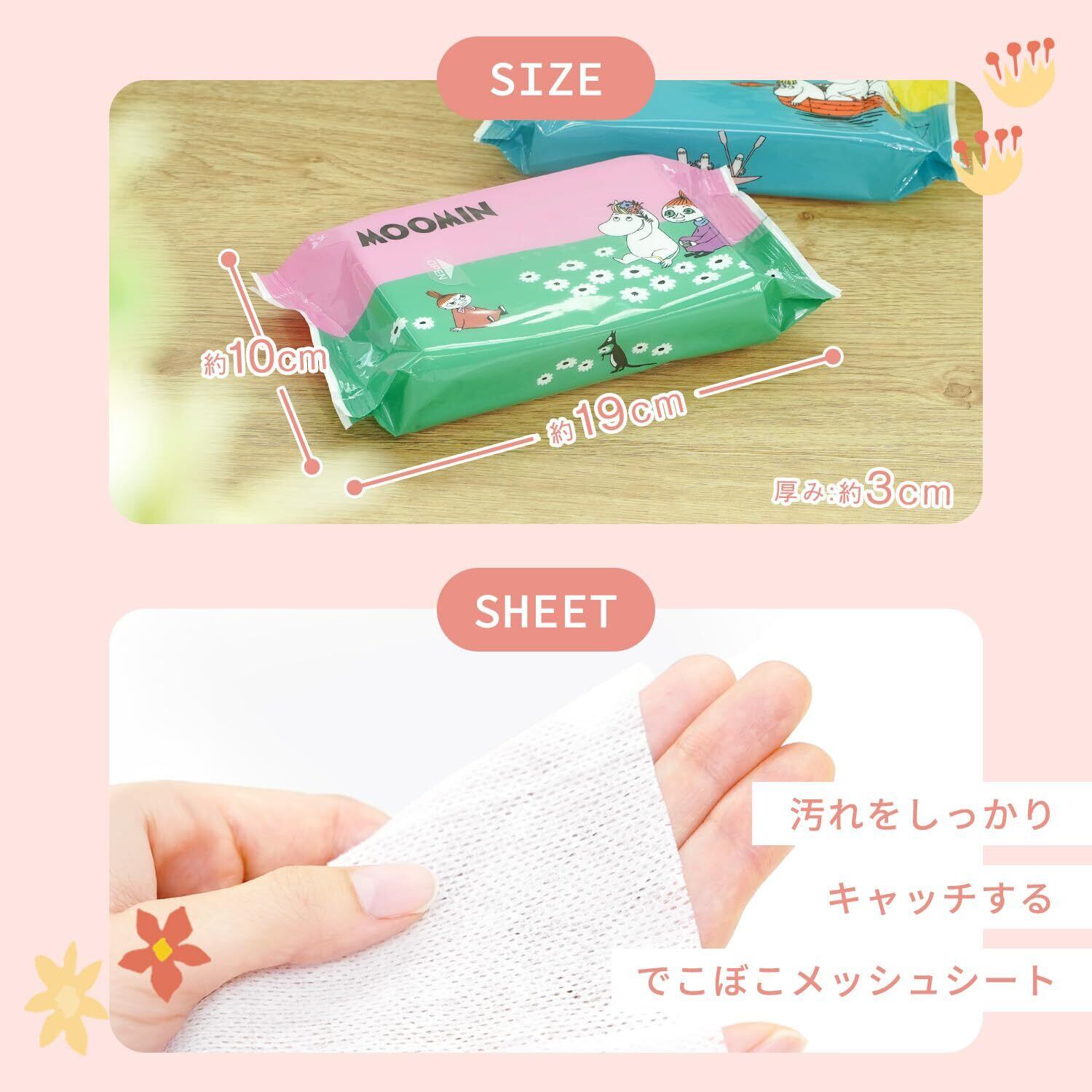 メッシュタイプなので、凹凸に汚れをからめてしっかりキャッチします。小さなお子様の肌にも優しいシートです。