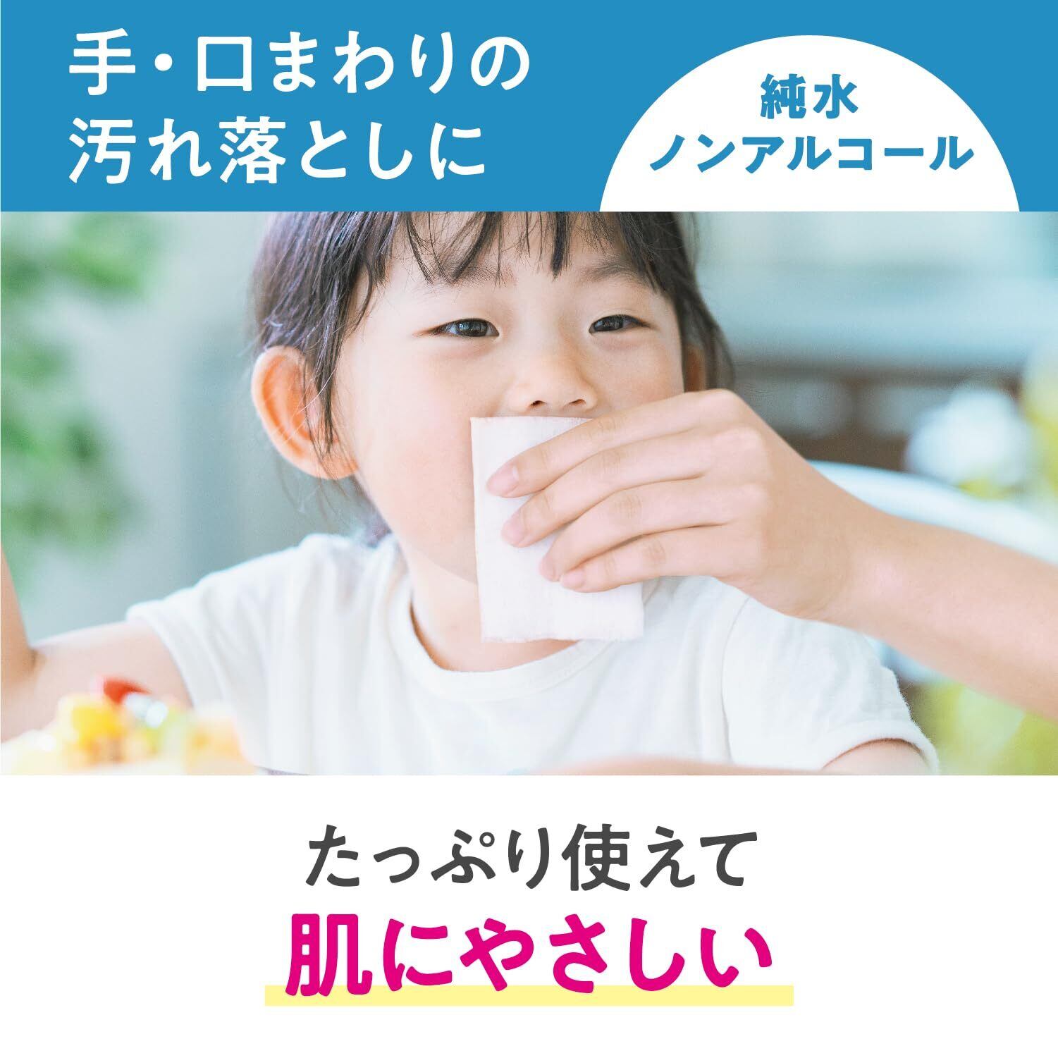 ●身のまわりの除菌や手、口まわりの汚れ落としに●お子様にも安心●ノンアルコール、天然除菌成分配合で手肌にやさしい●ヒアルロン酸、尿素、11種の天然植物エキス入りふんわり厚手やわらかシート●パラベンフリー、無香料※全ての菌を除去するわけではありません