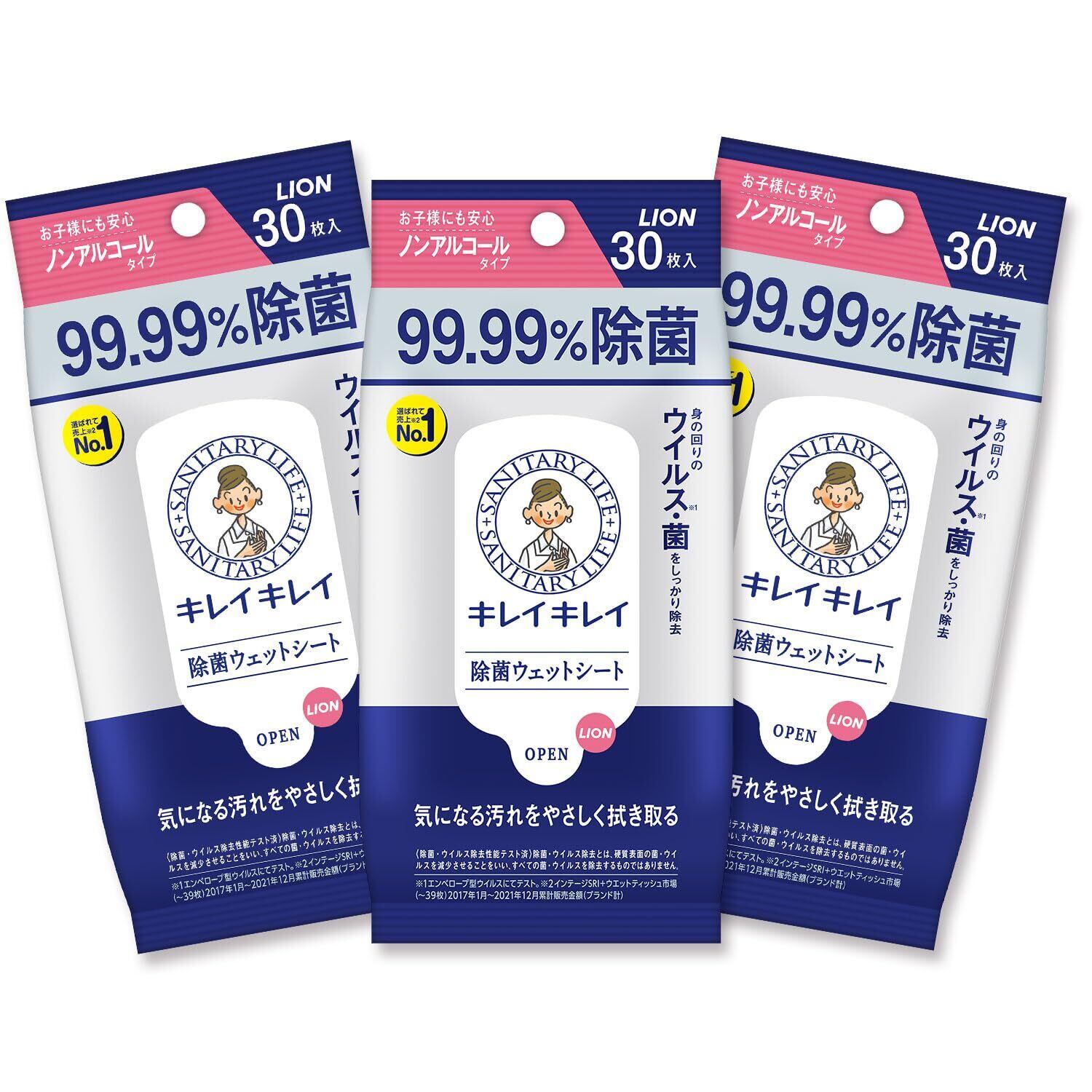 キレイキレイ 99.99%除菌ウェットシート 30枚×3個パック ノンアルコールタイプ