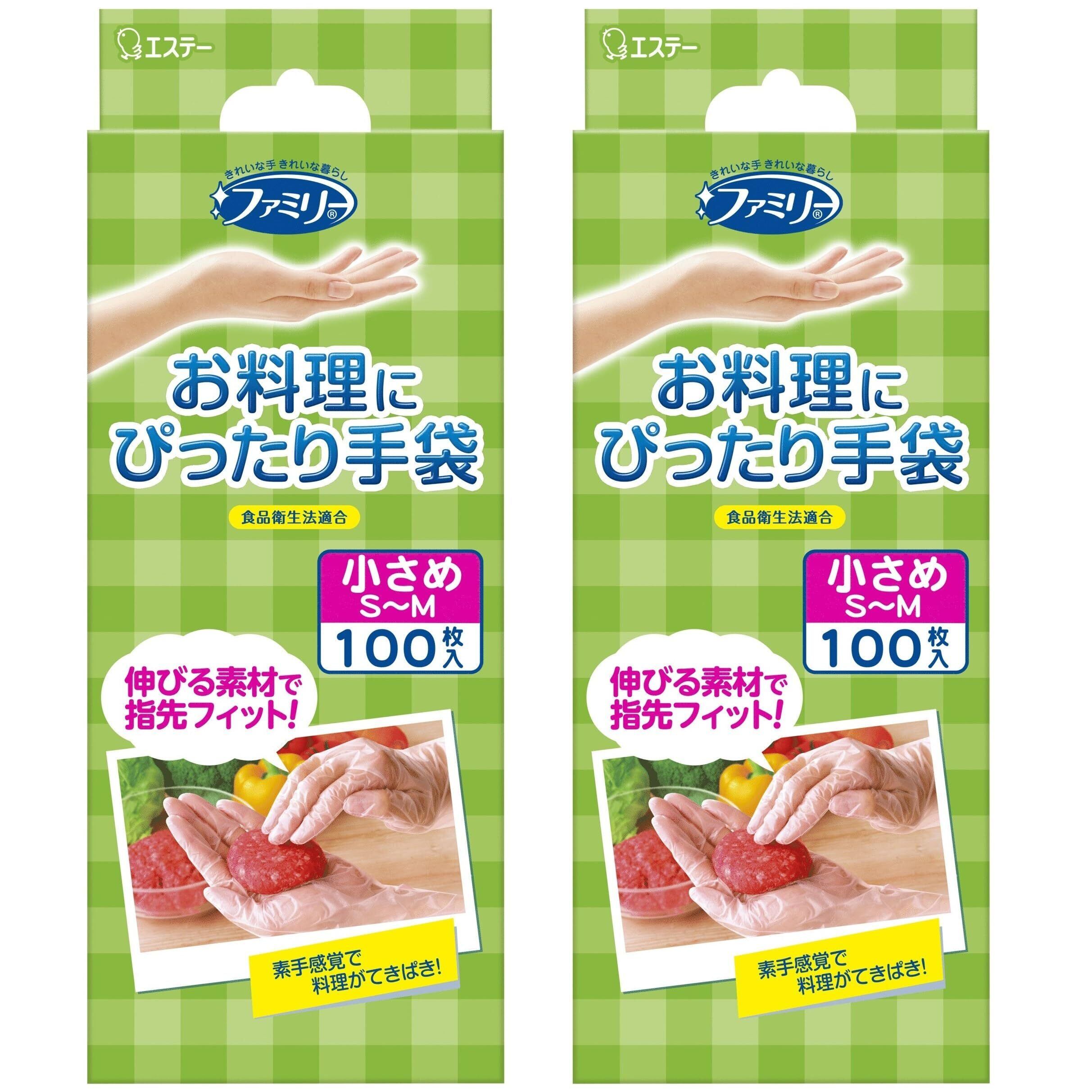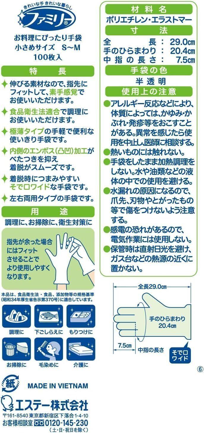 ファミリー お料理にぴったり 手袋 小さめ S~Mサイズ 半透明 100枚×2個 使い捨て手袋 左右両用タイプ 調理 掃除 毛染め 使い捨て (食品衛生法適合)