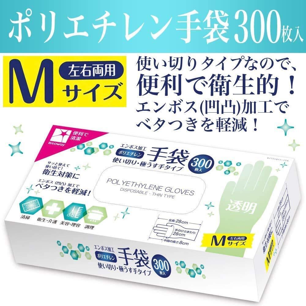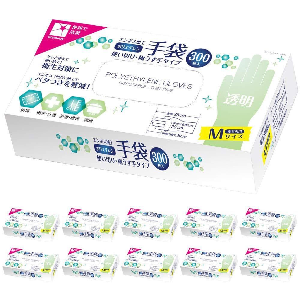 ポリエチレン 手袋 使い捨て 計3,000枚入り (300枚入り×10個) エンボス Mサイズ