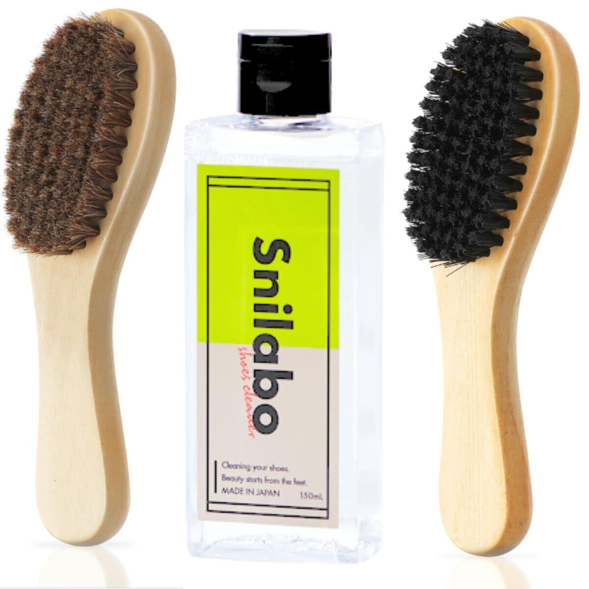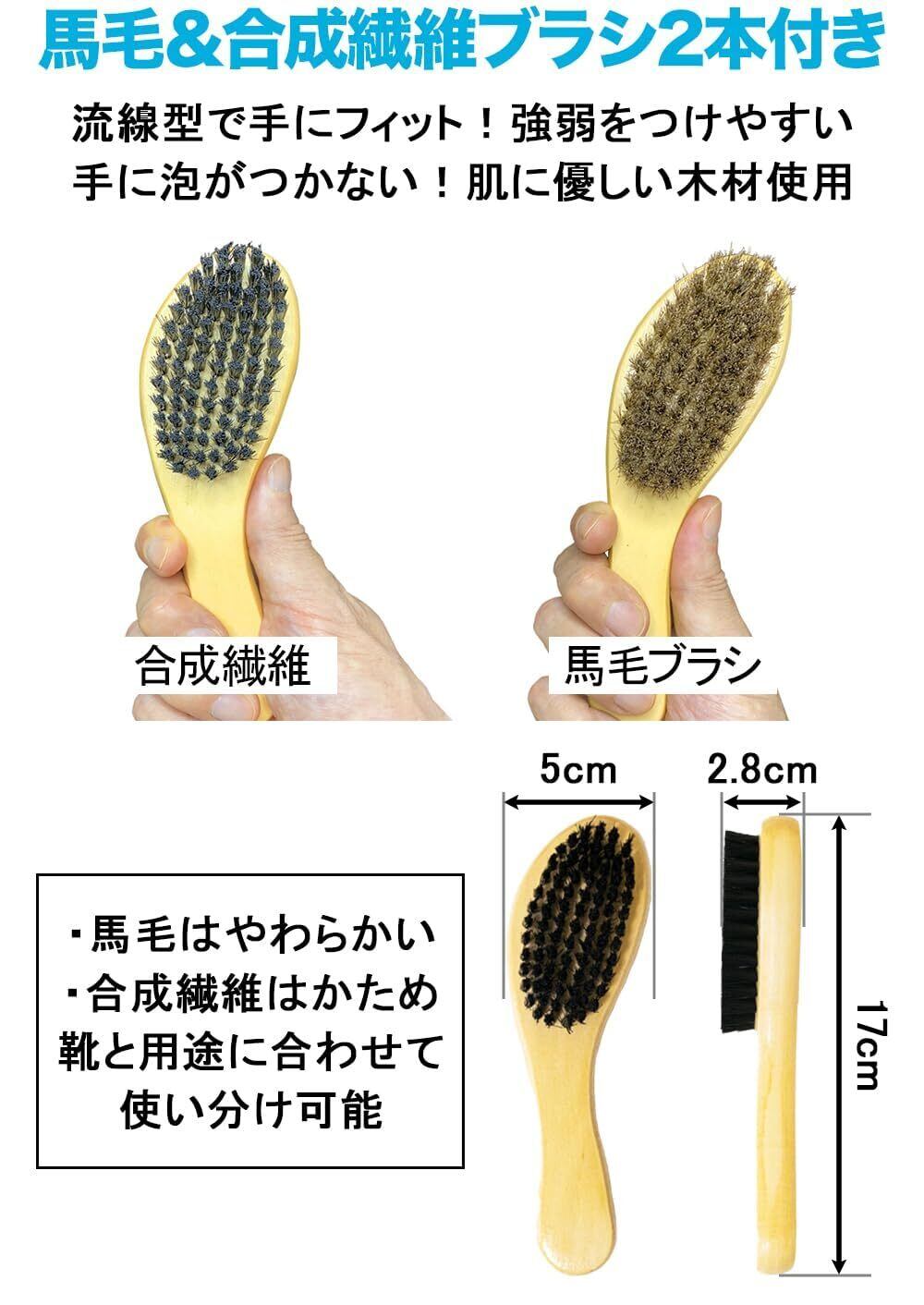 スニーカークリーナーと使い分け可能なブラシ2本セット セット内容:スニラボスニーカークリーナー&合成繊維ブラシ(ポリプロピレン)&馬毛ブラシ(馬毛100%)&説明書