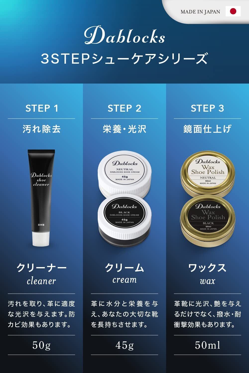 3種のワックスを配合し、光沢を与えます。