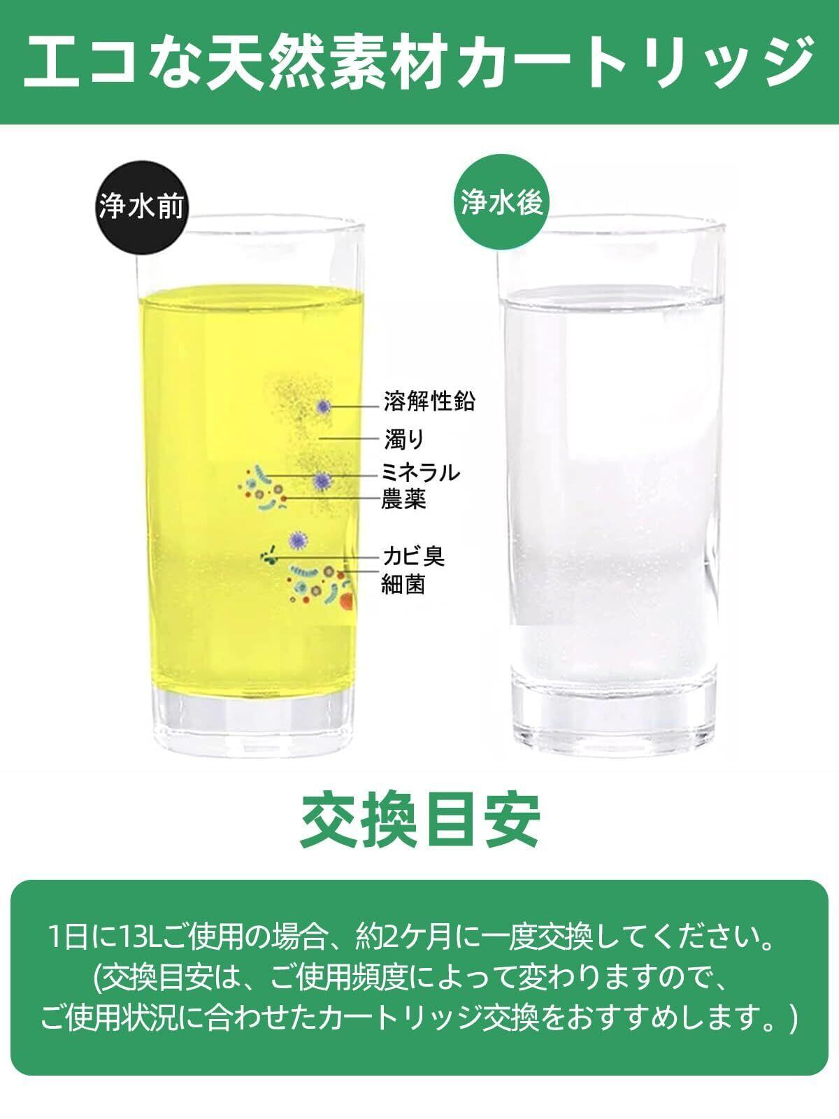 水道水中の不純物をろ過、吸着させるろ材には、97%天然素材を採用。製造 廃棄する際にも環境への負荷が少ないエコカートリッジ