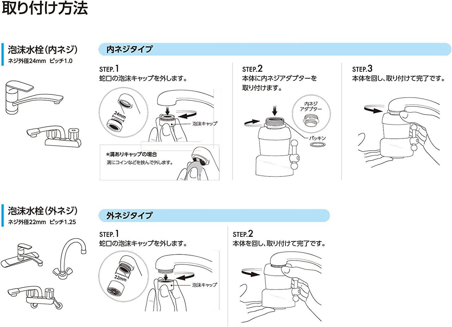 [取付可能水栓]外ネジ式泡沫水栓(ネジ部外径22mmネジ山ピッチ1.25)、内ネジ式泡沫水栓(ネジ部外径24mmネジ山ピッチ1.0)