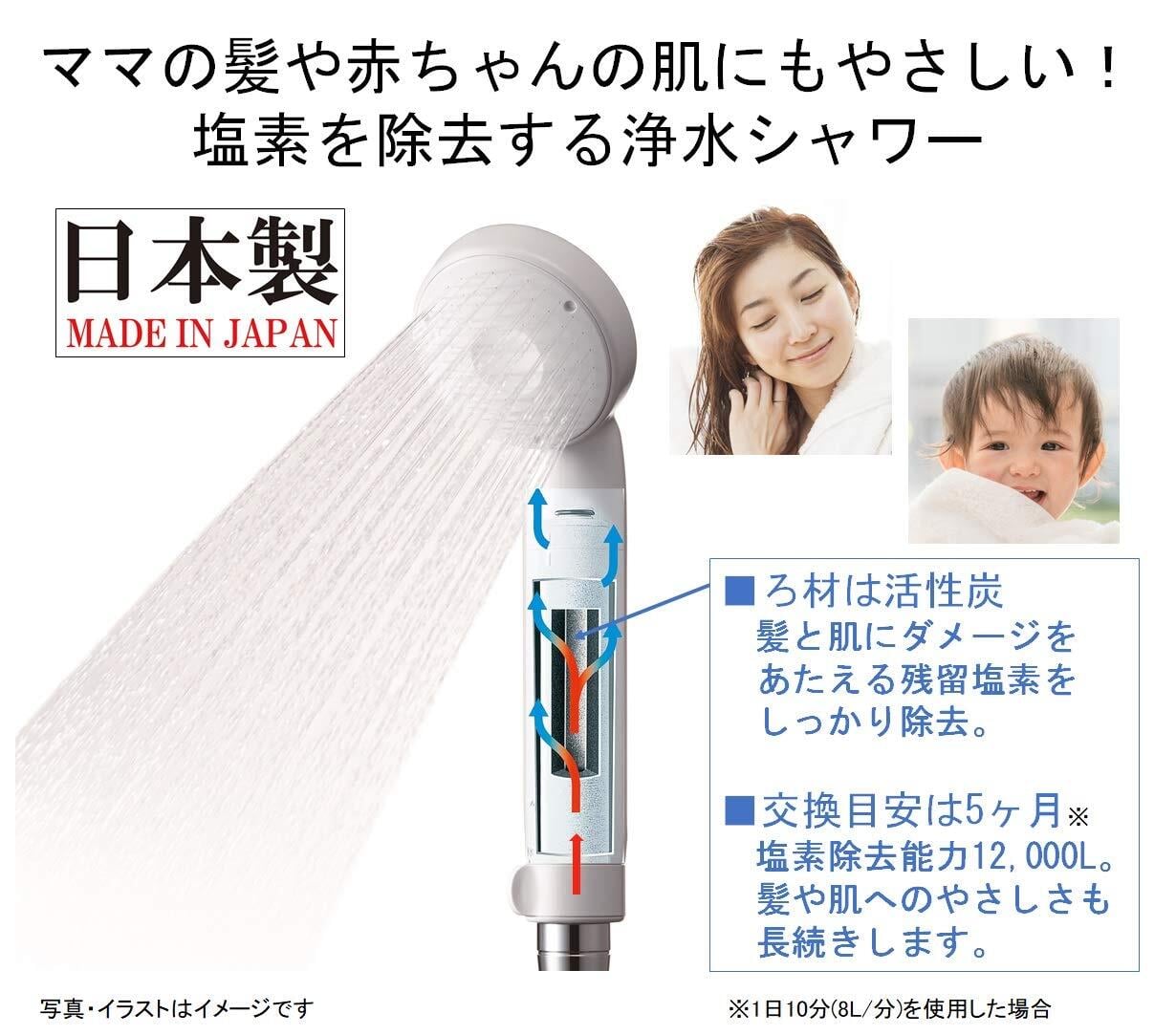 ※1:除塩素能力12,000L。1日10分(8L/分)を使用した場合の交換目安は5ヶ月。