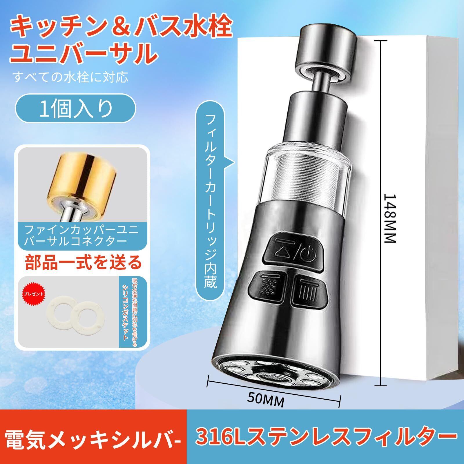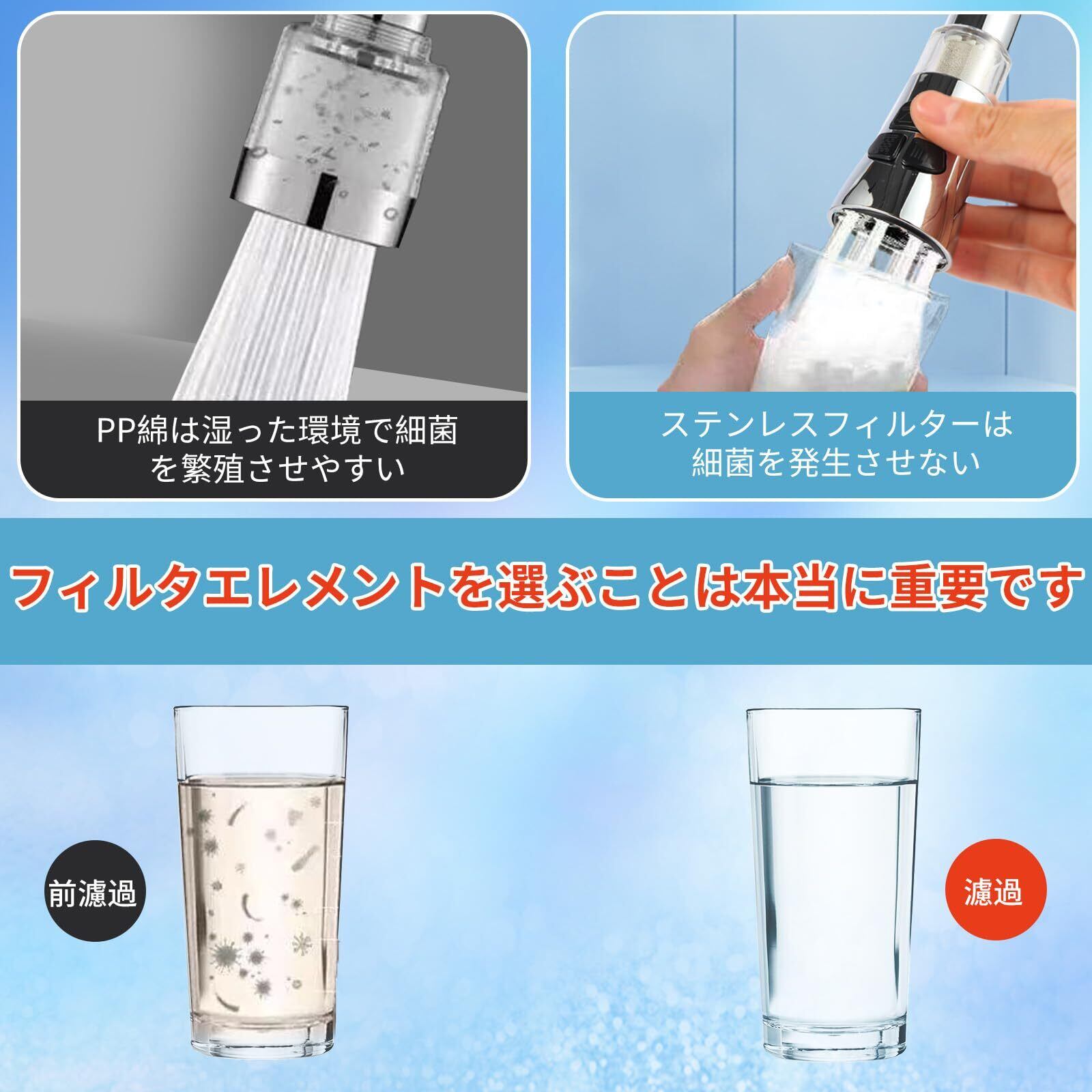 桜と 浄水器 蛇口直結型 キッチン・シャワー 台所コックエクステンダー360度回転式 世帯のろ過の浄水 3モード切り替え洗浄の反飛び散るヘッド(電気メッキシルバー)