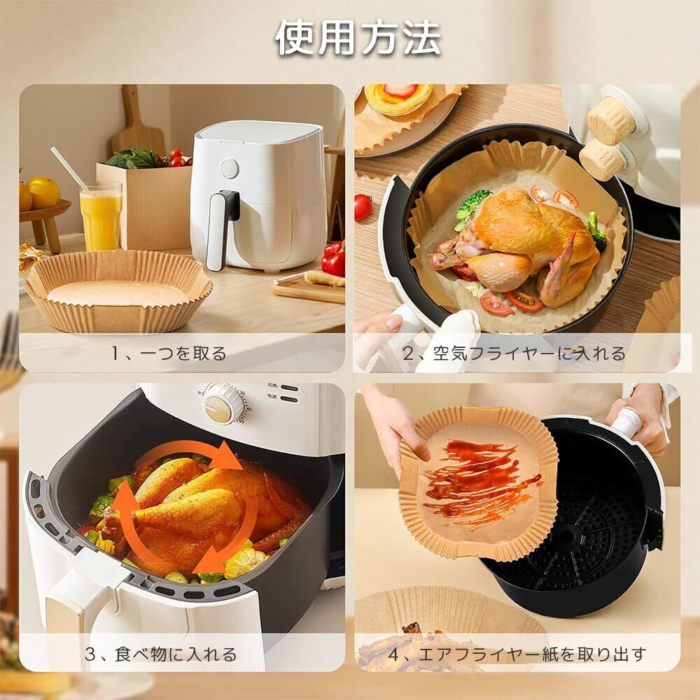 1.【100枚入りの使い捨てエアフライヤー用クッキングシート】毎日の料理やお菓子作りに十分な量をご用意。使い終わったらそのまま捨てるだけで、フライヤーの掃除不要。 2.【食品衛生法適合の高品質耐熱オーブンペーパー】食品グレードのパーチメント紙を使用し、防水・耐油・ノンスティック加工。230℃まで耐熱可能で、蒸し器やオーブン、電子レンジにも対応。 3.【簡単便利な使い捨て設計】紙を破ったり折ったりカットする必要はありません。軽量なので、必ず十分な量の食材と一緒に使用してください。 4.【幅広い調理器具に対応】エアフライヤーだけでなく、電子レンジ・オーブン・蒸し器・調理器具など様々な用途に使えます。家庭料理、バーベキュー、キャンプにも最適。 5.【掃除がラクで時短に貢献】食材の油汚れやカスが直接フライヤーに付着しないので、調理後もフライヤーが新品同様にキレイ。後片付けが苦手な方におすすめ。
