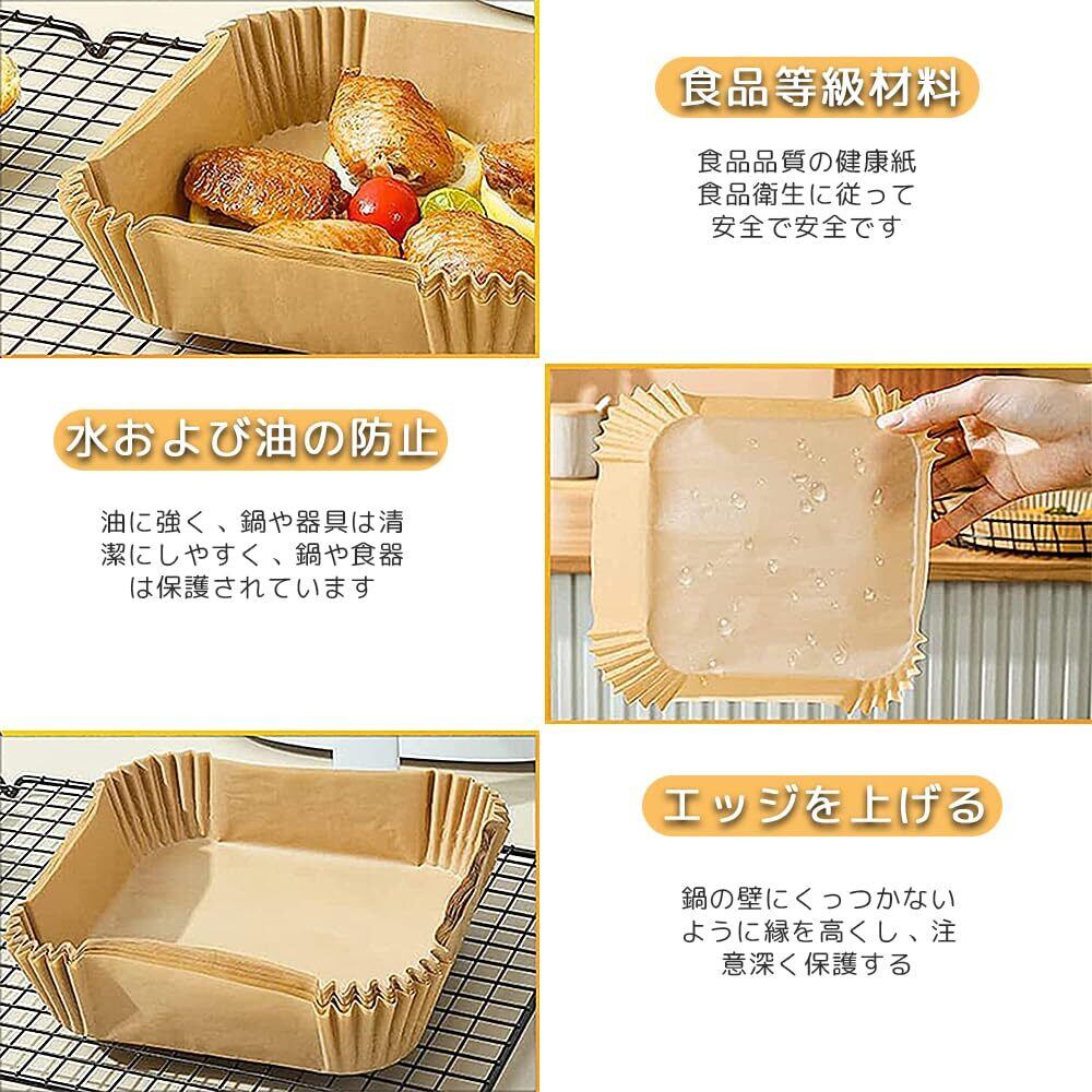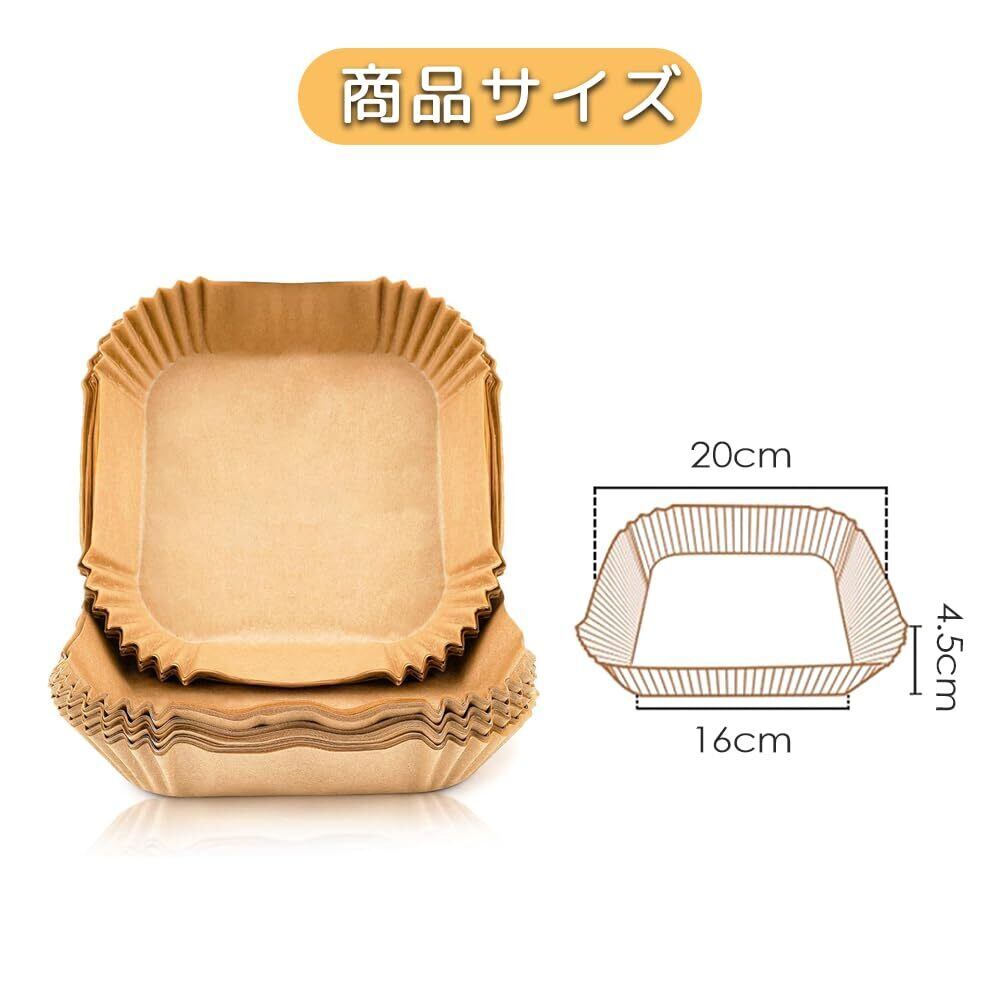 エアフライヤー用クッキングシート 100枚入り 方形 20×16×4.5cm ノンフライヤーシート 耐熱230℃ ノンフライヤー・エアフライヤー・オーブン対応 オーブンペーパー 油吸収紙