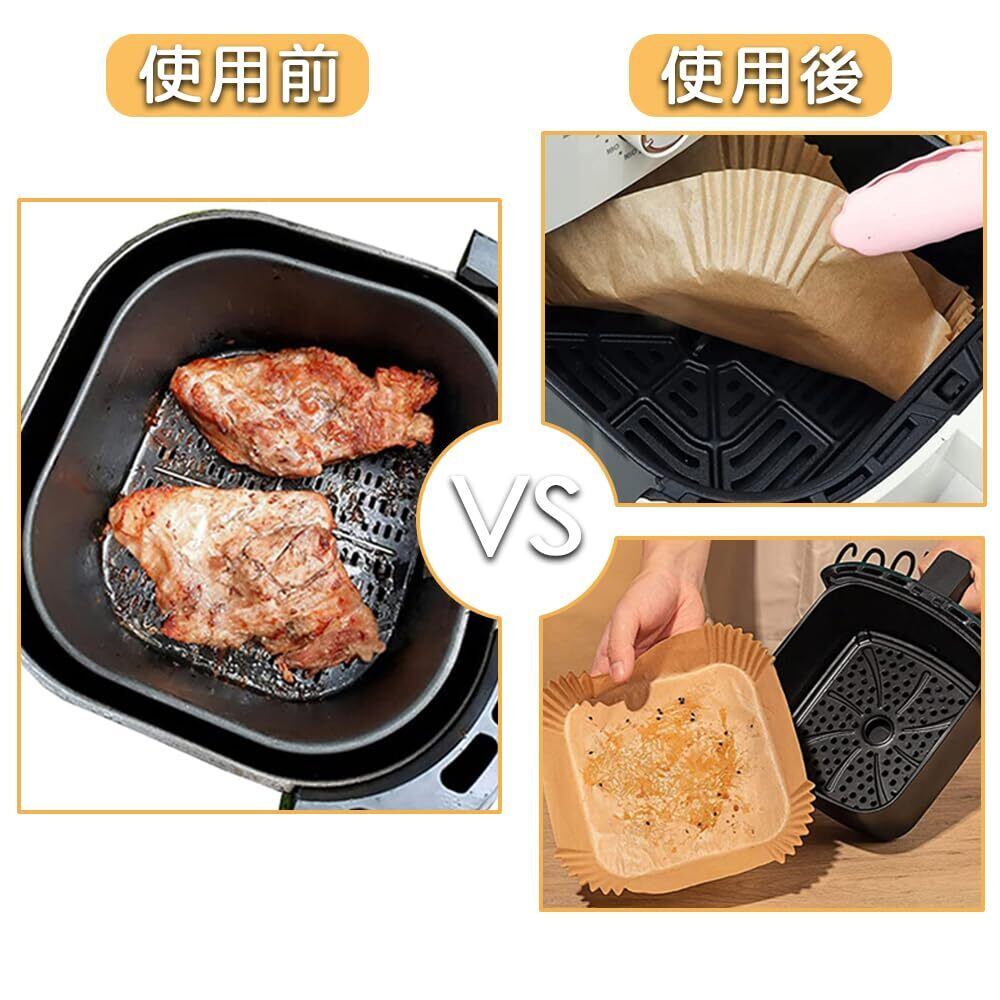 【100枚入りの使い捨てエアフライヤー用クッキングシート】毎日の料理やお菓子作りに十分な量をご用意。使い終わったらそのまま捨てるだけで、フライヤーの掃除不要。