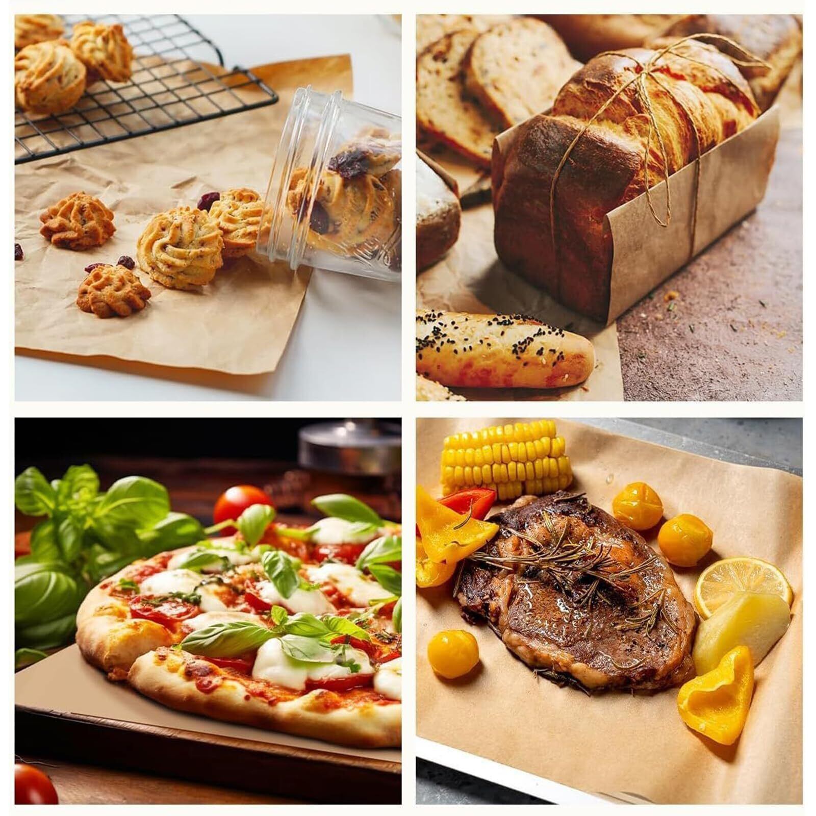 【幅広適用】オーブン料理、電子レンジ、蒸し料理、お菓子作り、グリル、フライ、ラッピング、ベーキングなど、様々な用途に対応します。フードバスケット、フードトレイ、フライドポテトコーンの裏地に最適。