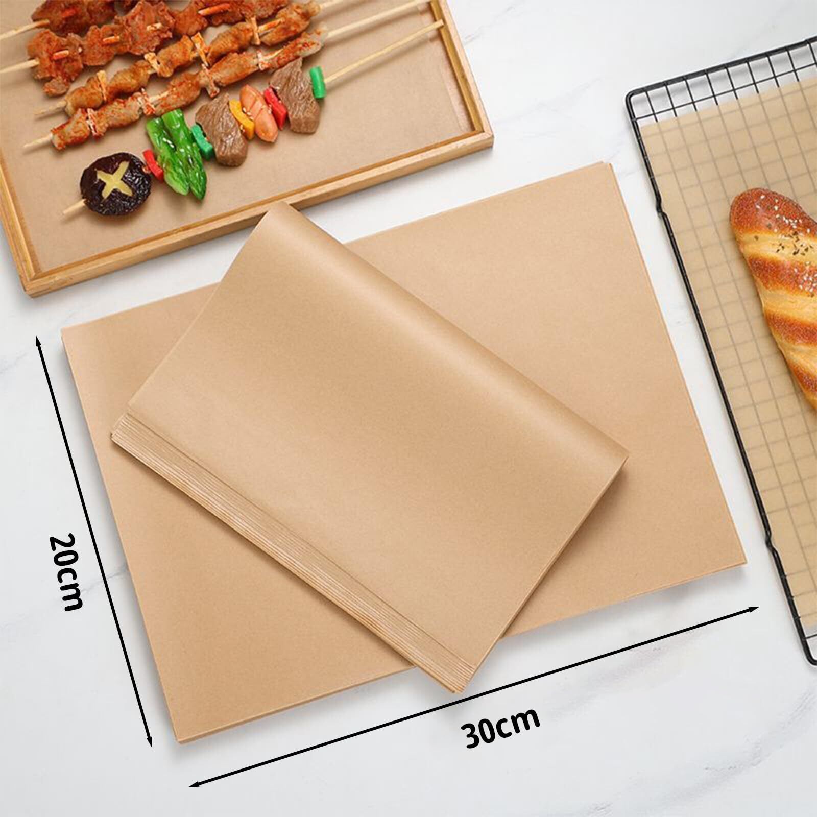 クッキングシート オーブンペーパー 100枚入り 未晒クラフト紙 天ぷら敷紙 ハンバーガーサンドイッチラップ オーブンシート クラフト紙 ノンスティックパーチメント 耐油 耐熱 剥離性 ベーキング 料理 グリル フライ 蒸し (20X30cm)