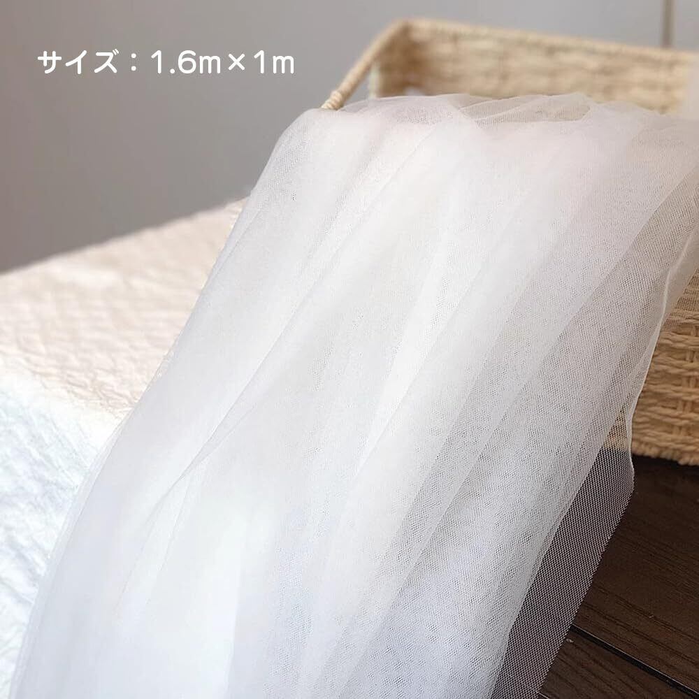 オーガンジー 生地 ソフトチュール 160cm×100cm ウェルカムスペース 結婚式 誕生日 装飾 飾り付け (ホワイト)