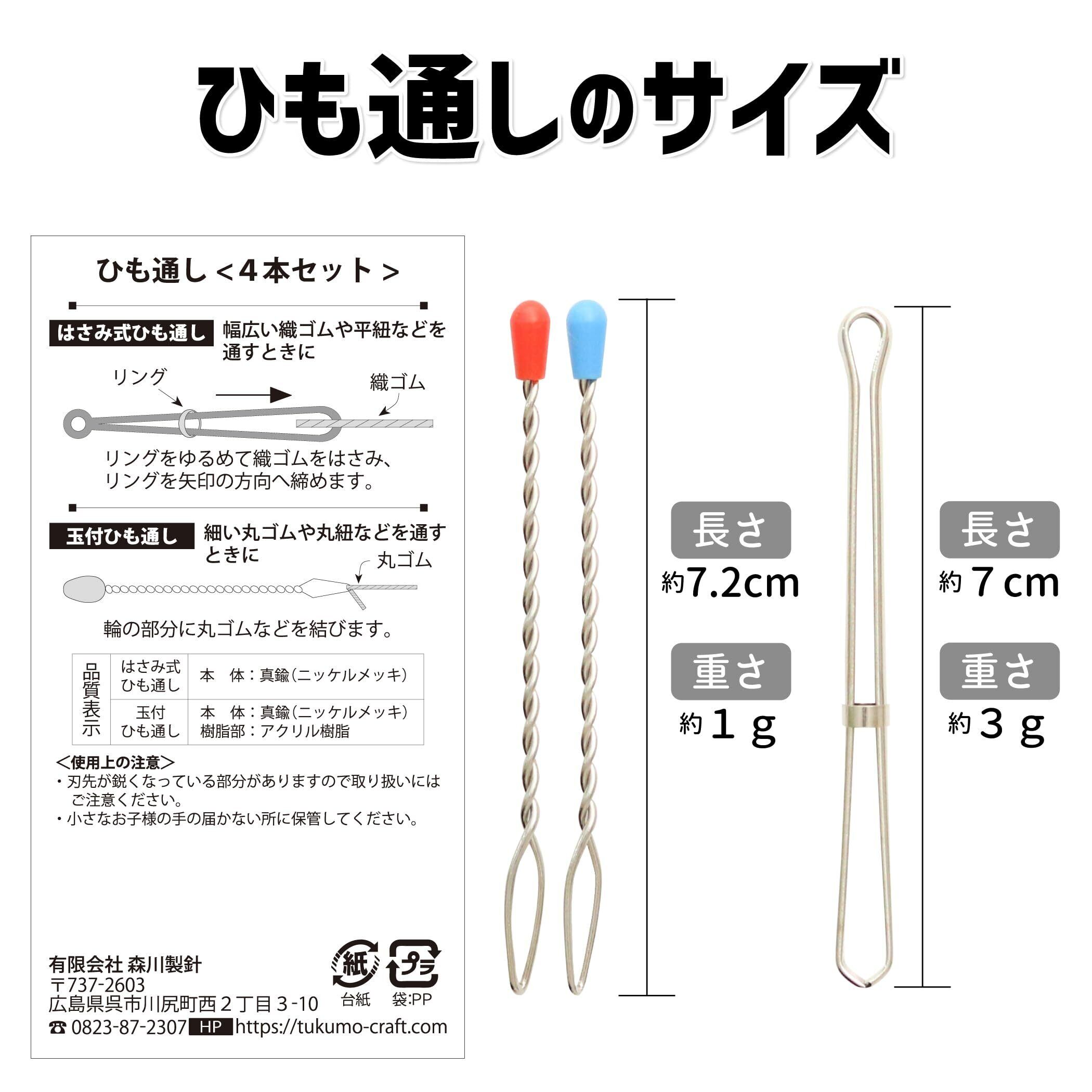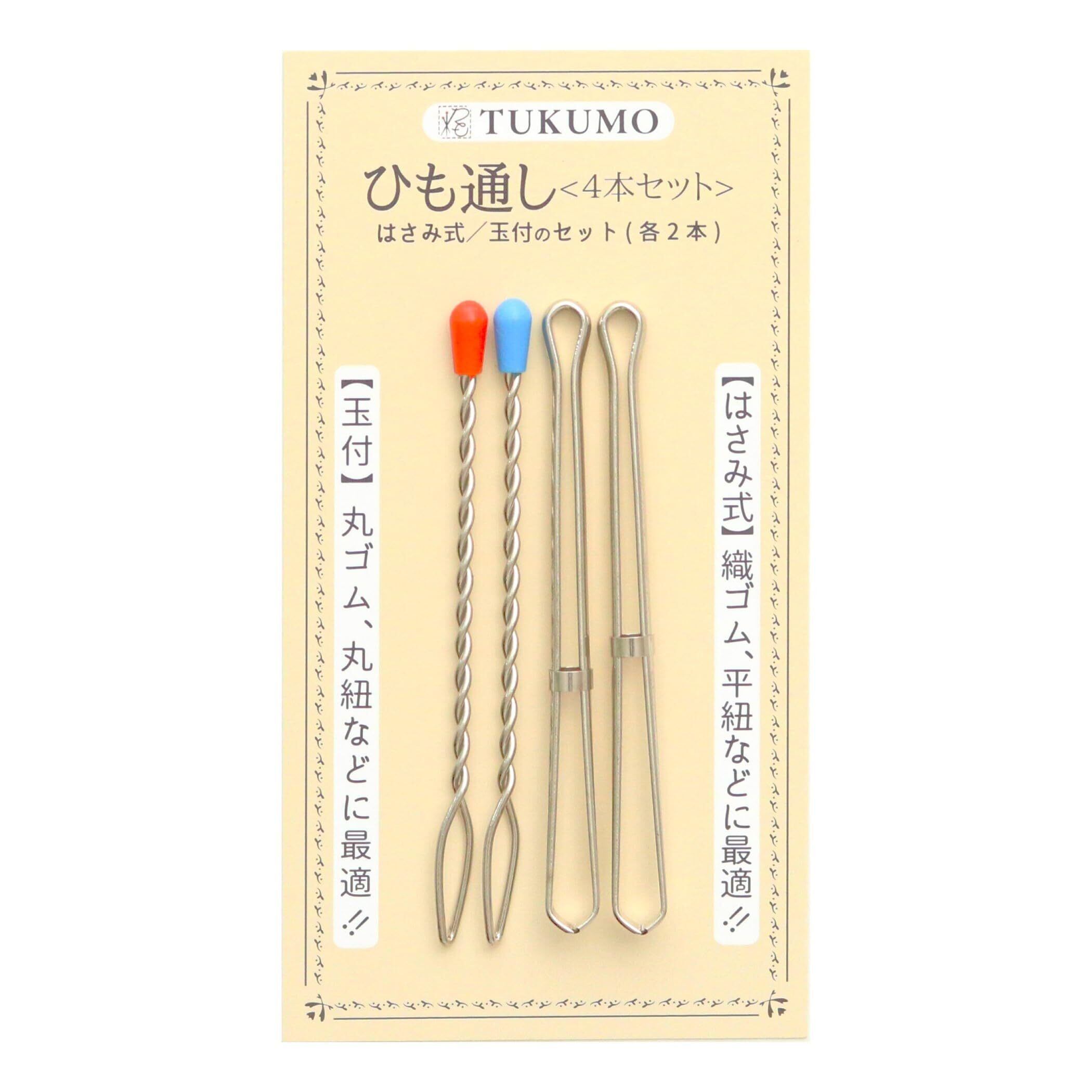 TUKUMO(つくも)ひも通し4本入り ハサミ式 玉付き ゴム紐 ゴム通し 紐通し 手芸道具 裁縫