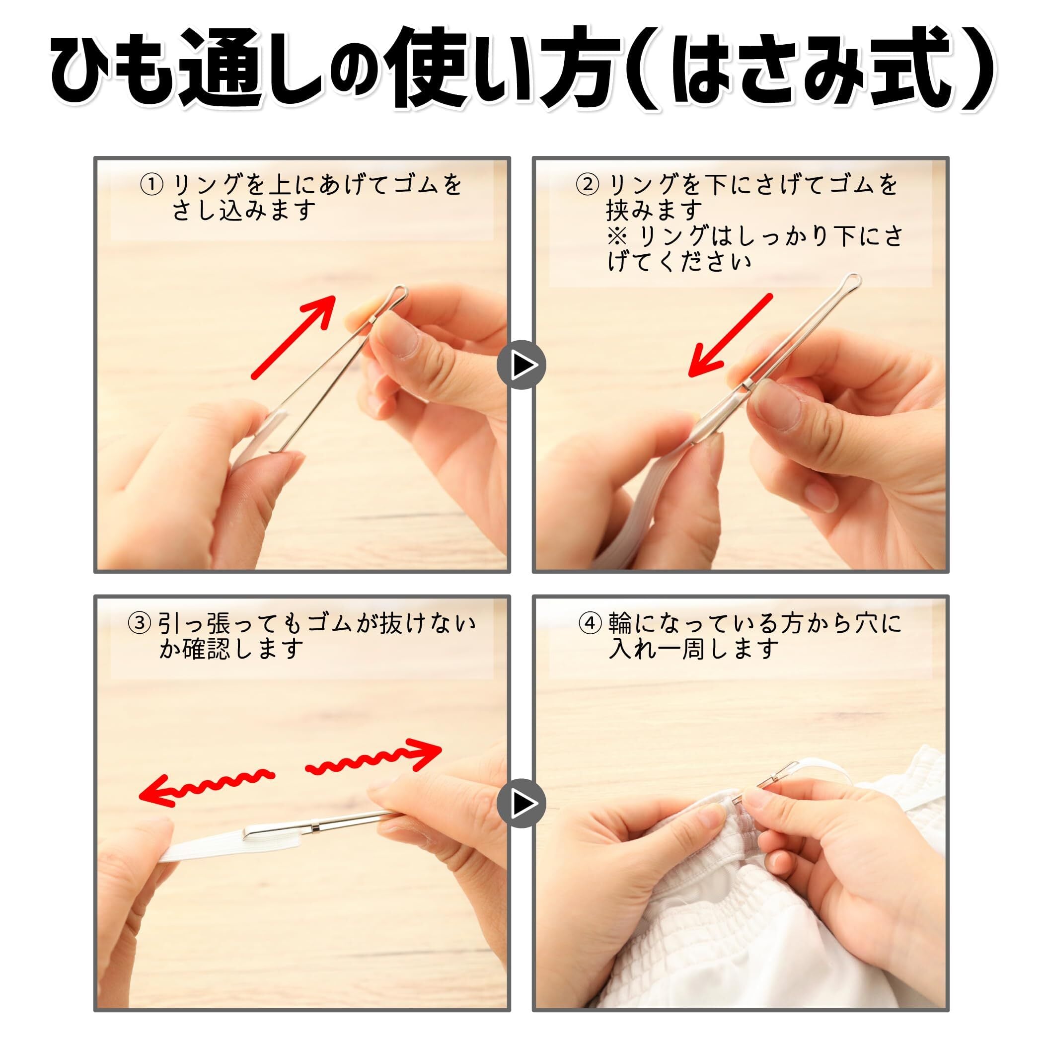 内容量:ハサミ式ひも通し2個、玉付きひも通し2個