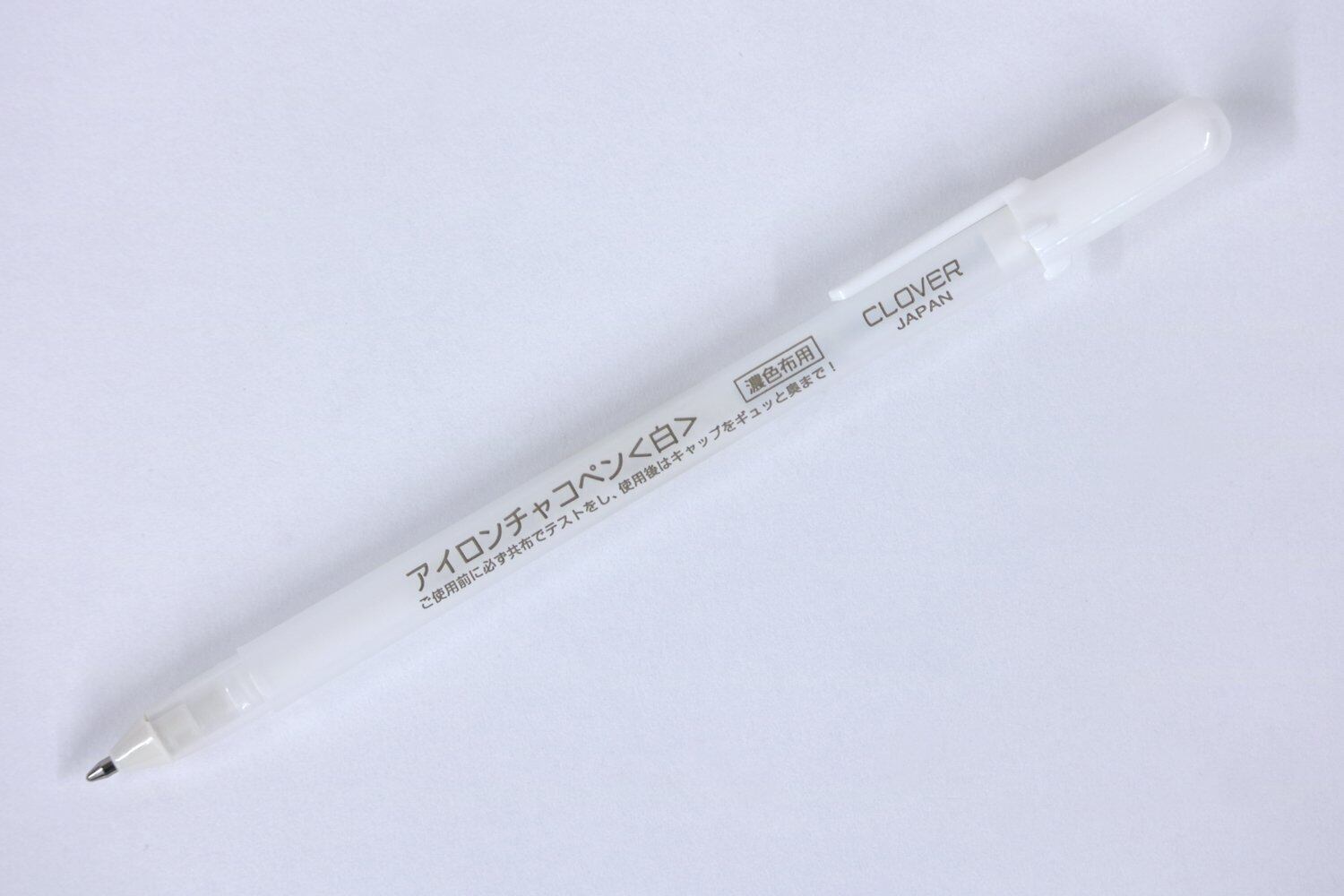 黒や濃い色の布地に適したホワイトマーカーチャコペン。アイロンの熱や水洗いでしるしが消える。