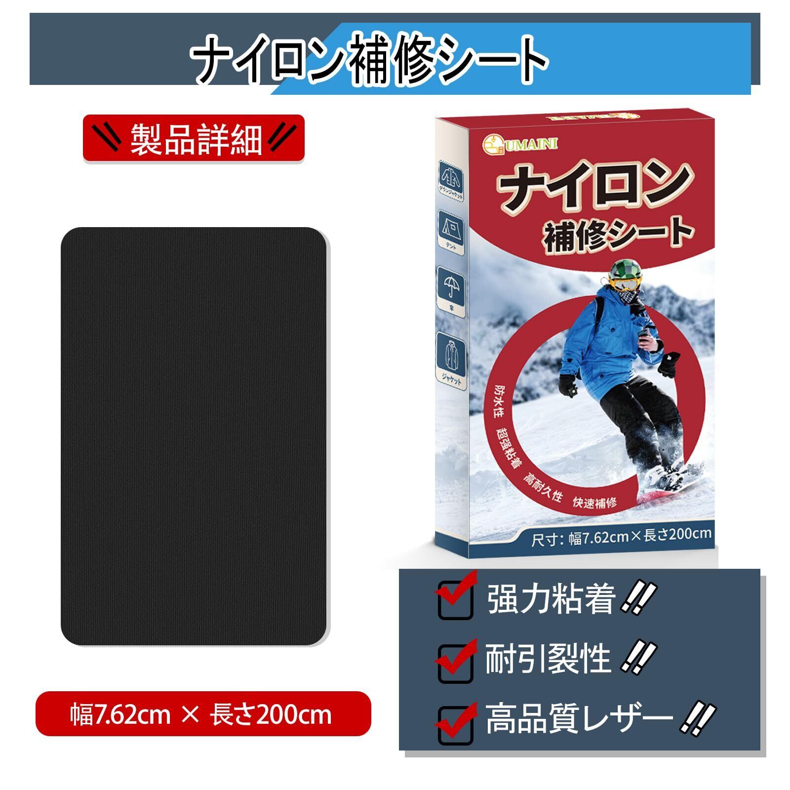 ナイロン補修シート 幅7.62cm×長さ200cm テント バイクシート ダウンジャケット 布破れ 補修テープ 強力 粘着 ナイロン 防水テープ(ブラック)