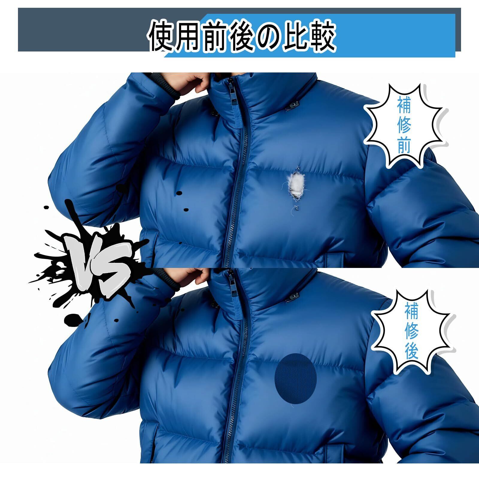 幅広い適用範囲:ナイロン補修シートは、ダウンジャケット、テント、ナイロン製衣類、レインコート、傘、バックパック、バッグ、オートバイシートなど、様々な製品の穴、破れ、キズ、生地のほつれの補修に適しています。手芸やDIYプロジェクトにもお使いいただけます。